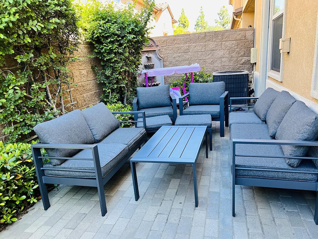 AECOJOY Aluminum Patio Furniture Set, 7 Pieces Outdoor Sectional Sofa Set, Dark Gray