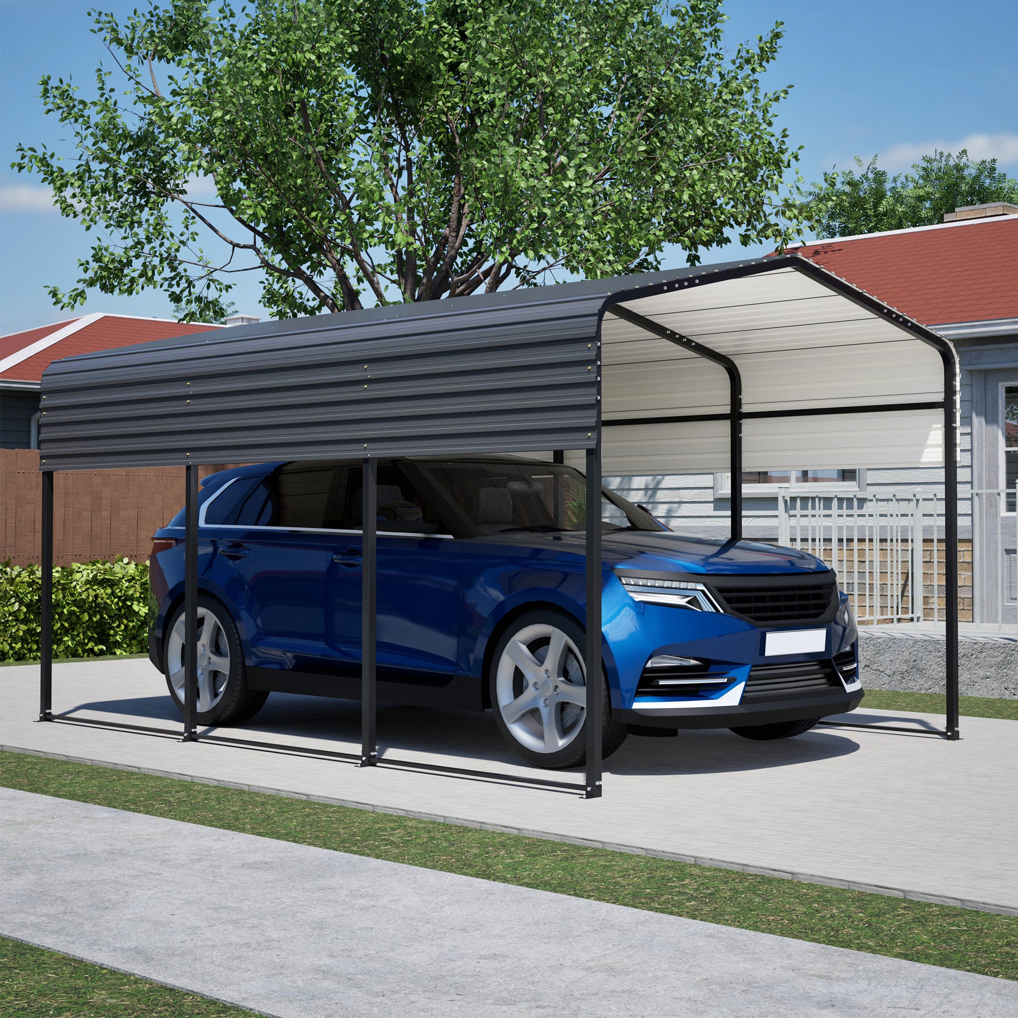 AECOJOY 10x15 FT Metal Carport Carports with Waterproof Cloth, Heavy Duty Galvanized Steel Roof