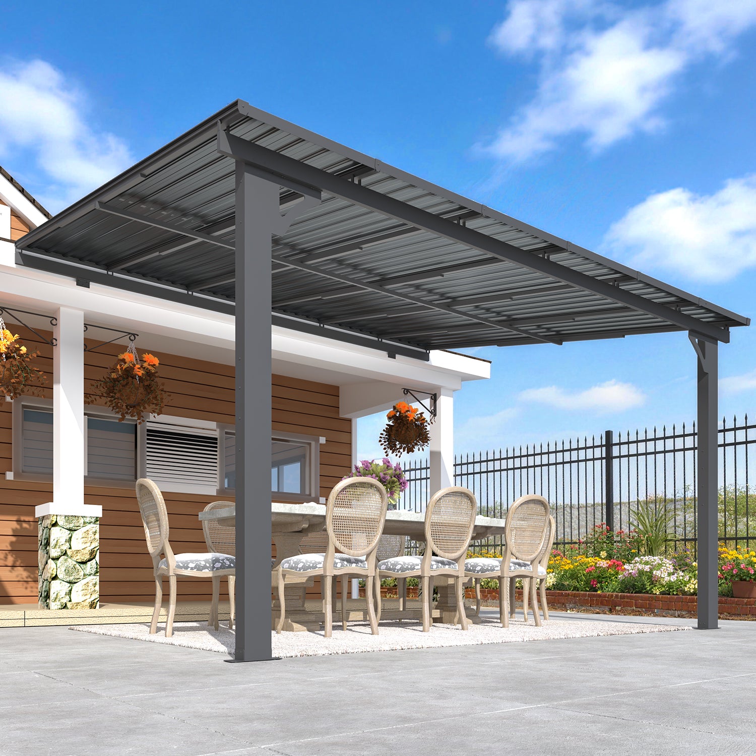 | Roof Material | Polycarbonate | Polycarbonate | Steel | Polycarbonate | Polycarbonate | Polycarbonate | Polyester Canopy |