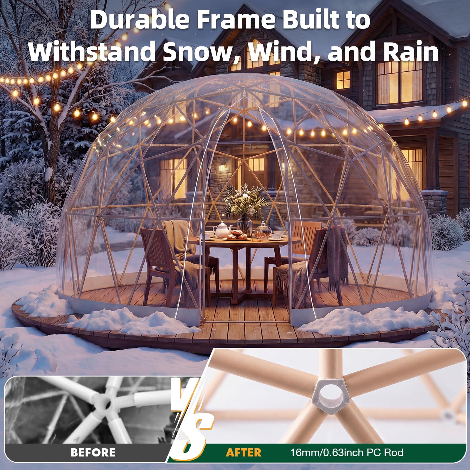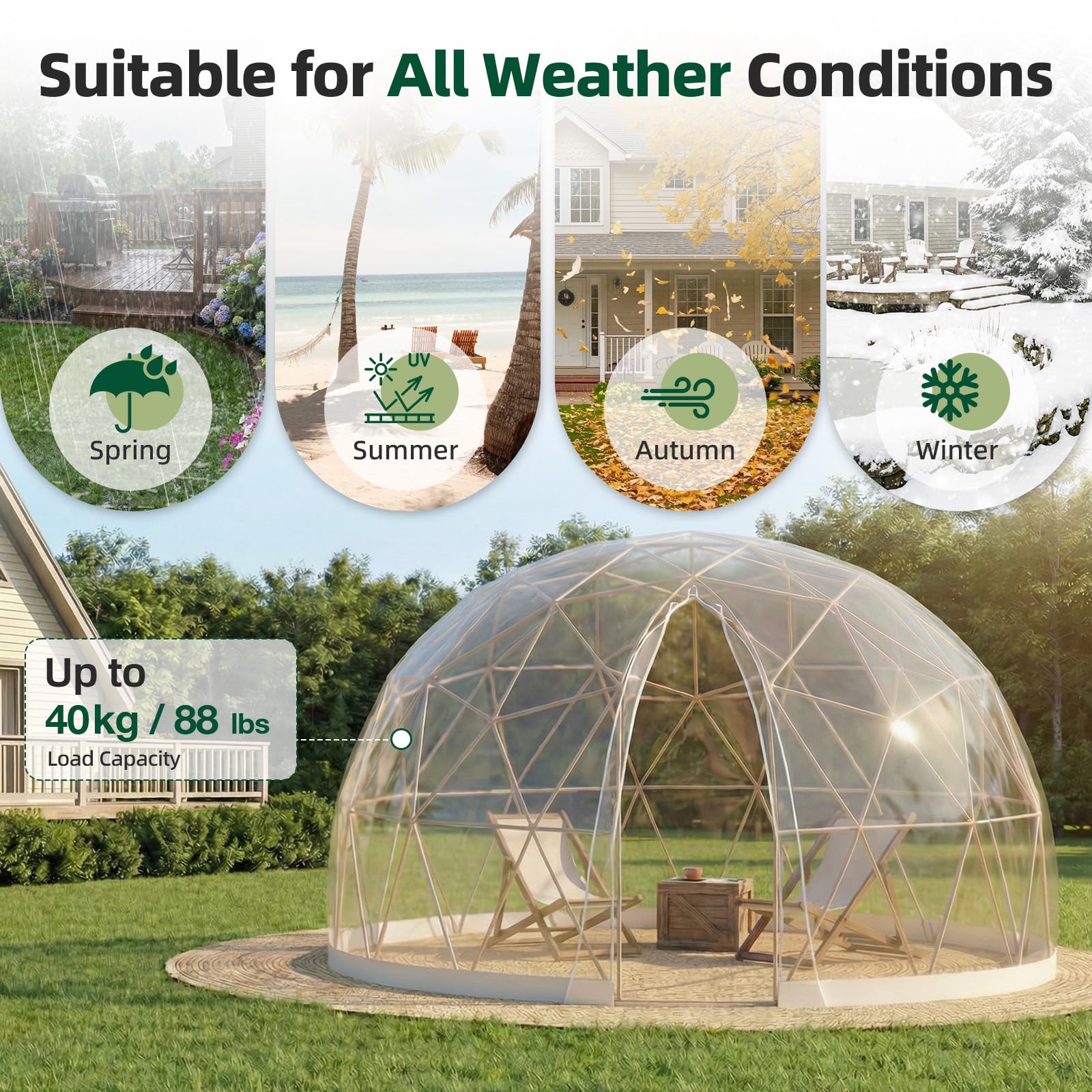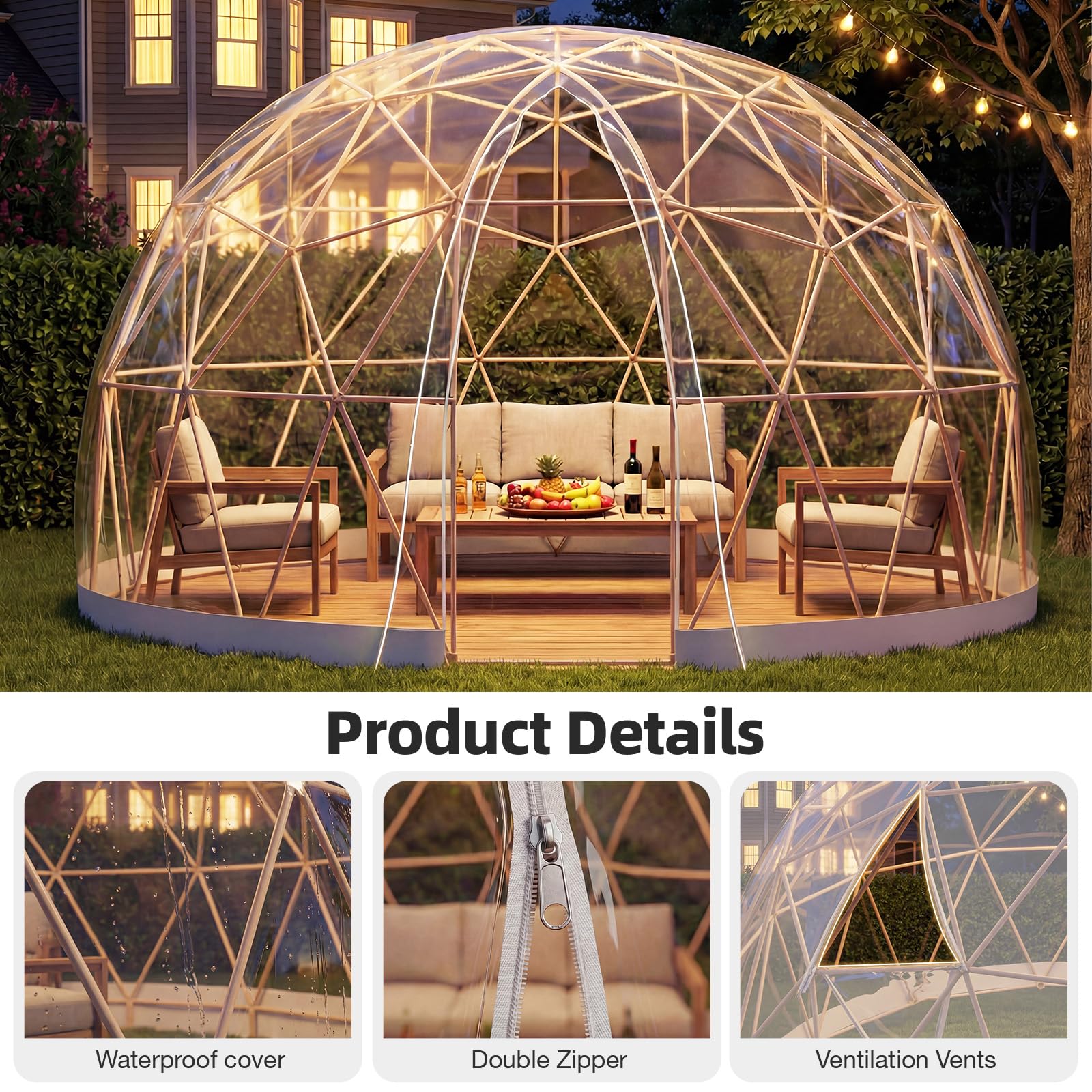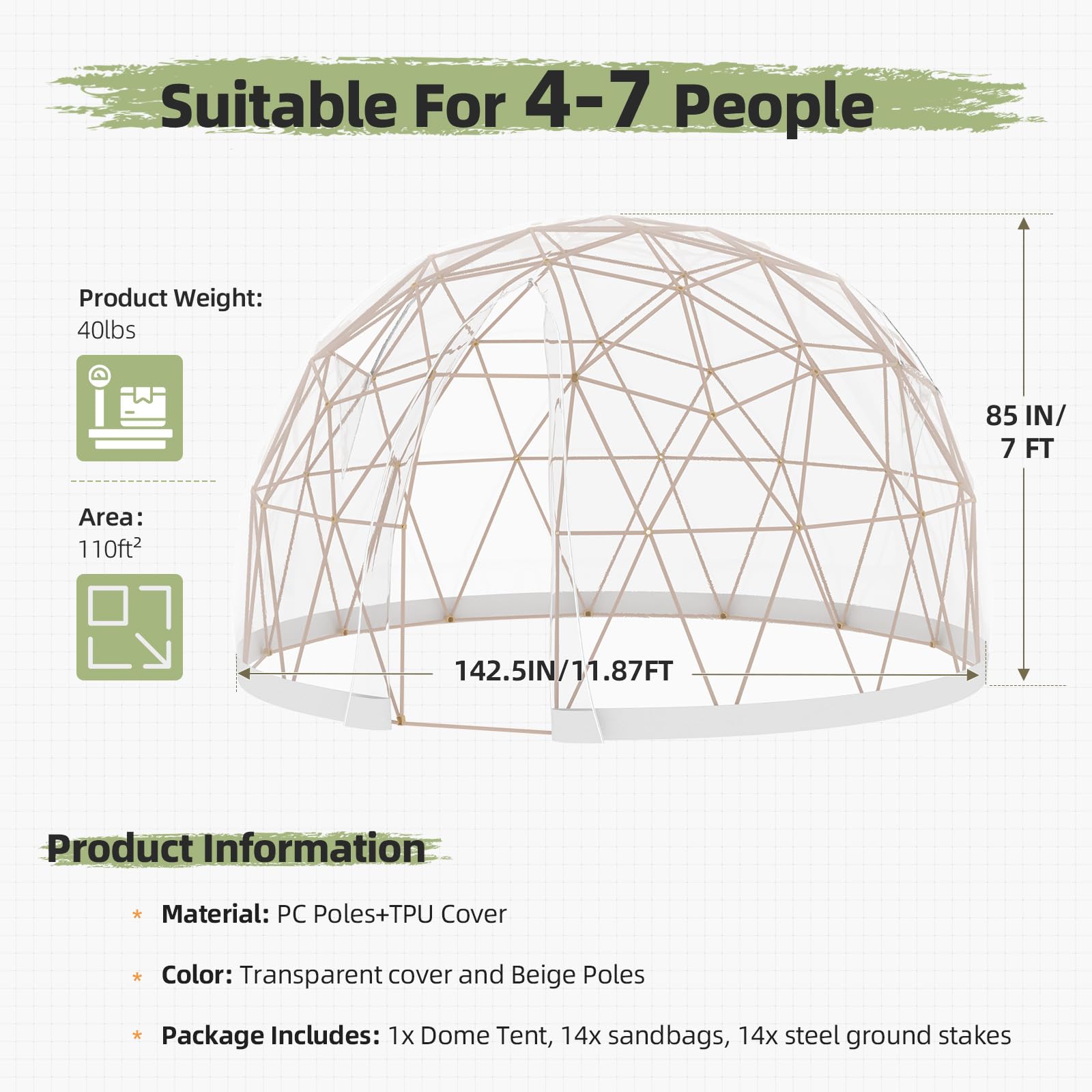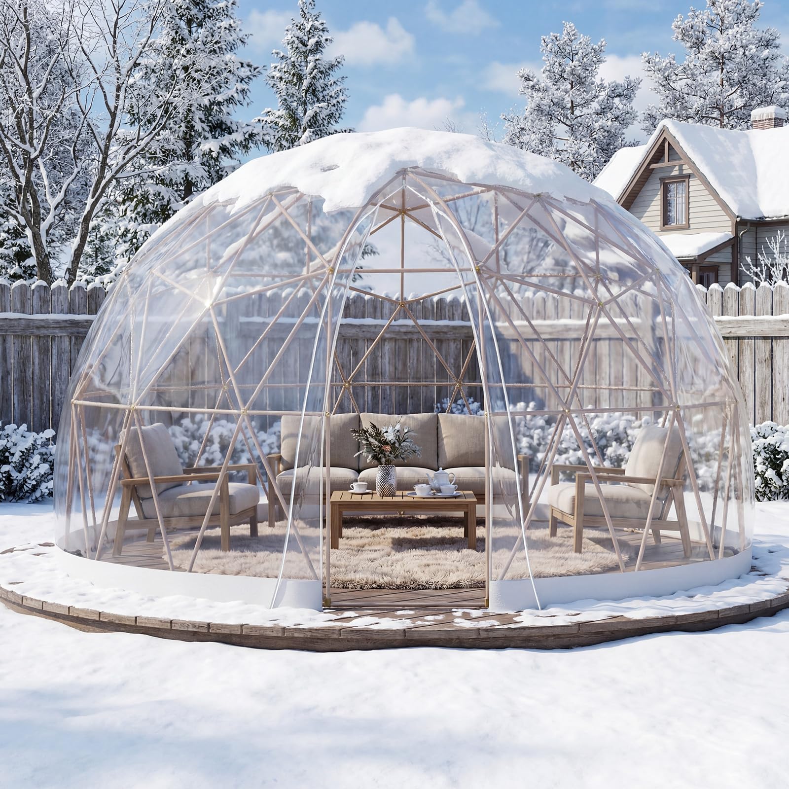 AECOJOY Outdoor Igloo Tent Dome for Winter, 12x12 Clear Bubble Tent for 4–7 People