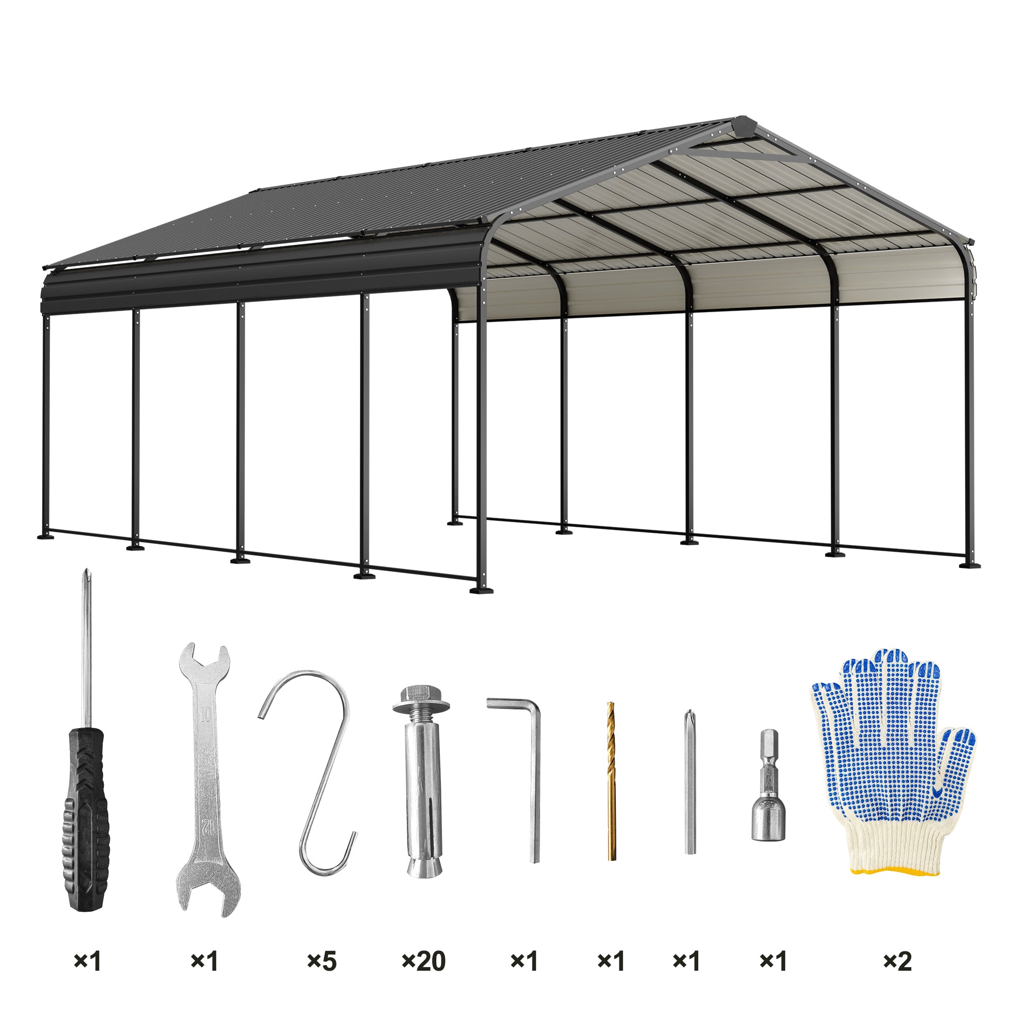 AECOJOY 12X20 FT Metal Carport, Outdoor Car Shelter All Weather, Heavy Duty Outdoor Galvanized Car Shelter