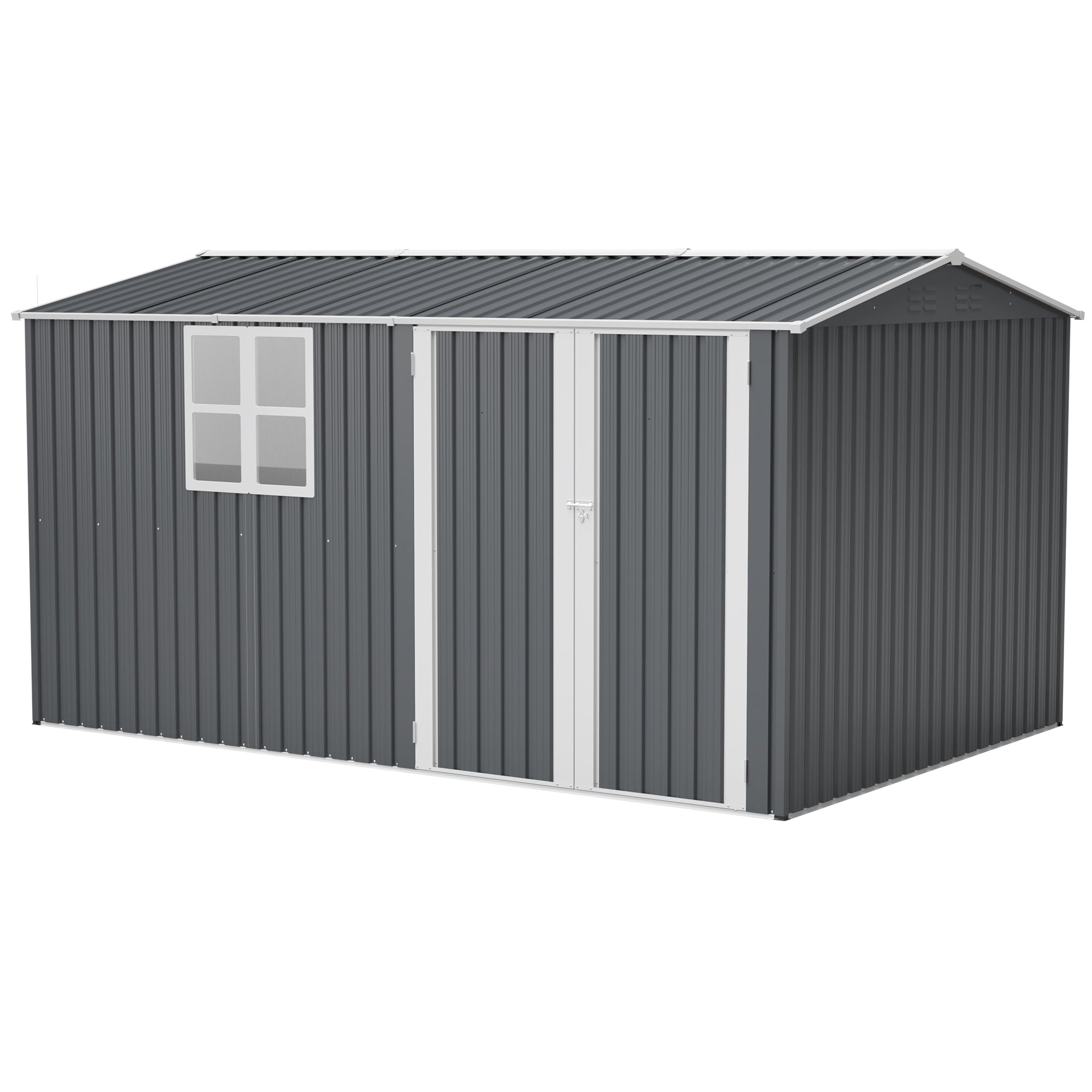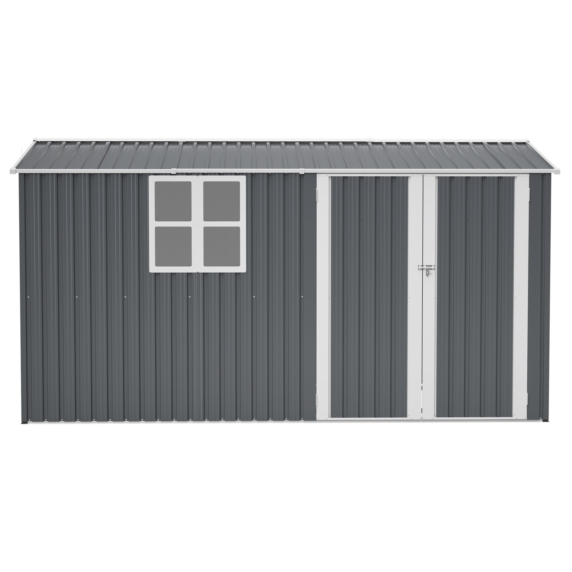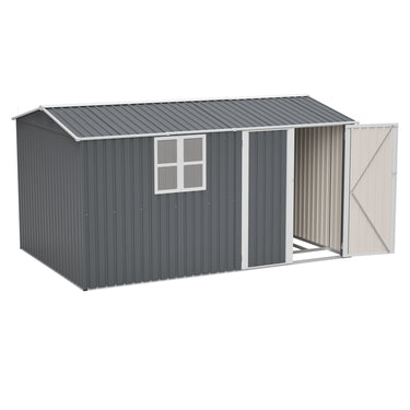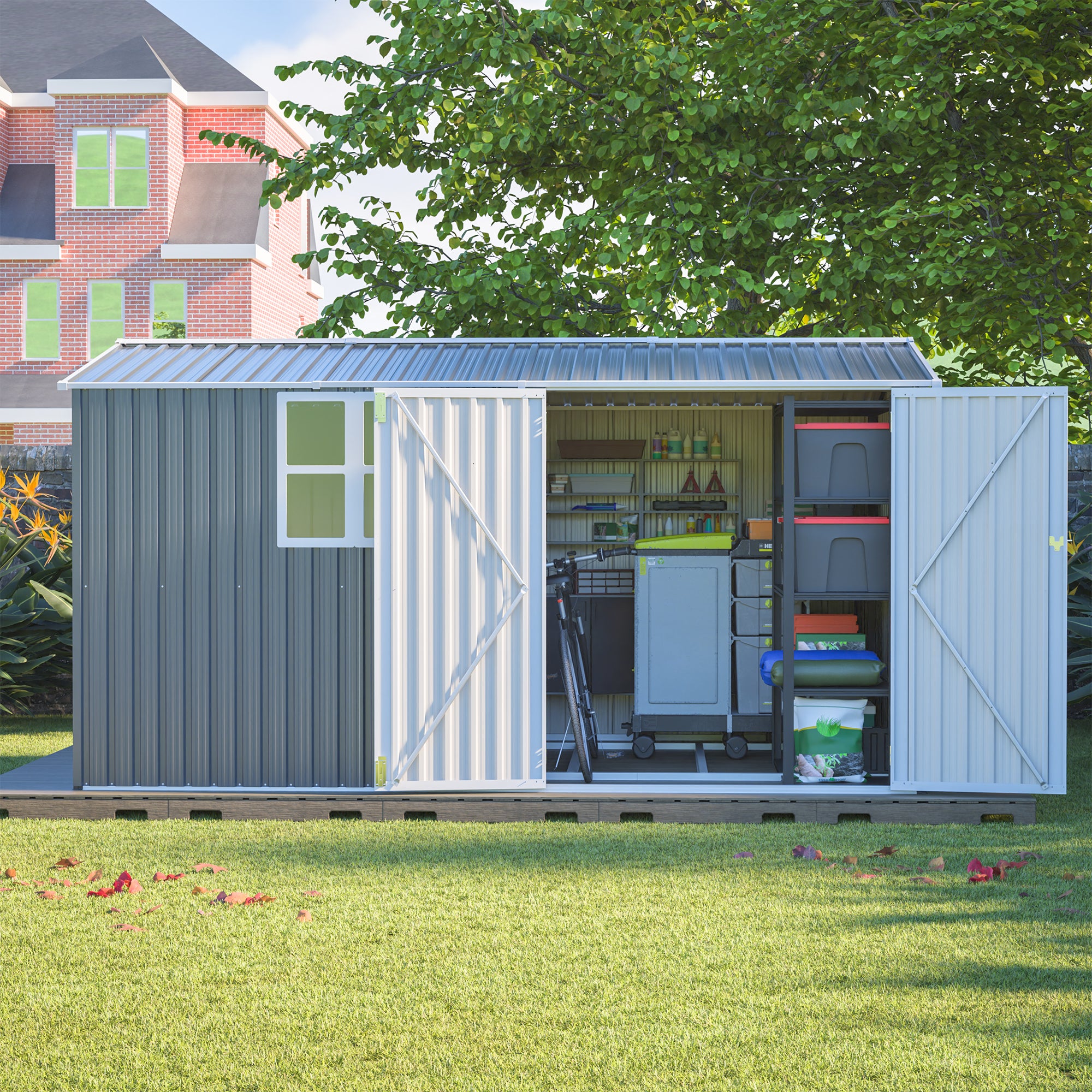 AECOJOY 12x8 Ft Outdoor Storage Shed, XL Heavy-Duty Steel Building with Window – Features Hinged Gray Doors & 4 Air Vents, Gray