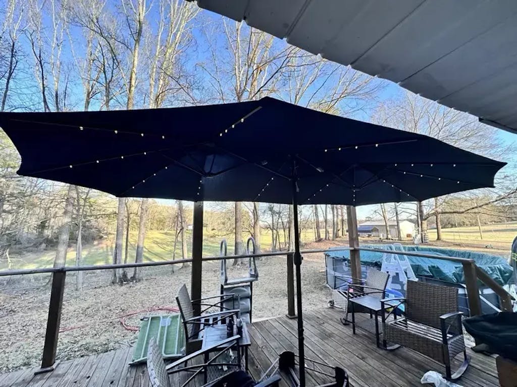 Equipped with 156 solar-powered LED lights, this umbrella transitions seamlessly from sunny afternoons to cozy evenings. The heavy-duty powder-coated steel pole and 12 durable fiberglass ribs make it a strong choice for windy conditions, making it suitable as a commercial patio umbrella or a dependable swimming pool umbrella for your outdoor lounge. Its crank mechanism ensures smooth opening and closing, while the versatile design fits beautifully in gardens, large patios, or even as swimming pool deck umbrellas. Whether you're hosting guests or relaxing in solitude, this 15ft patio umbrella brings shade, style, and lighting in one smart solution.