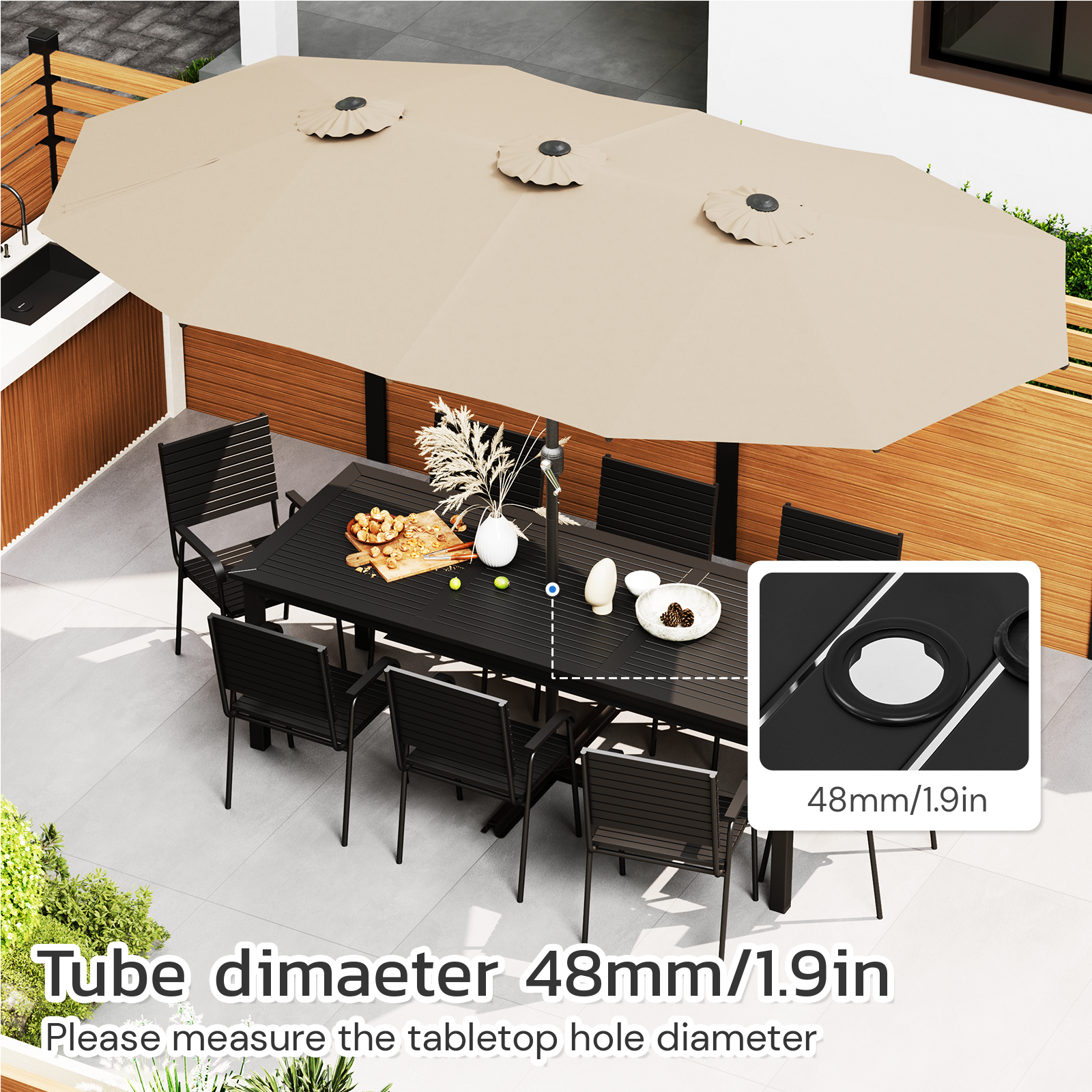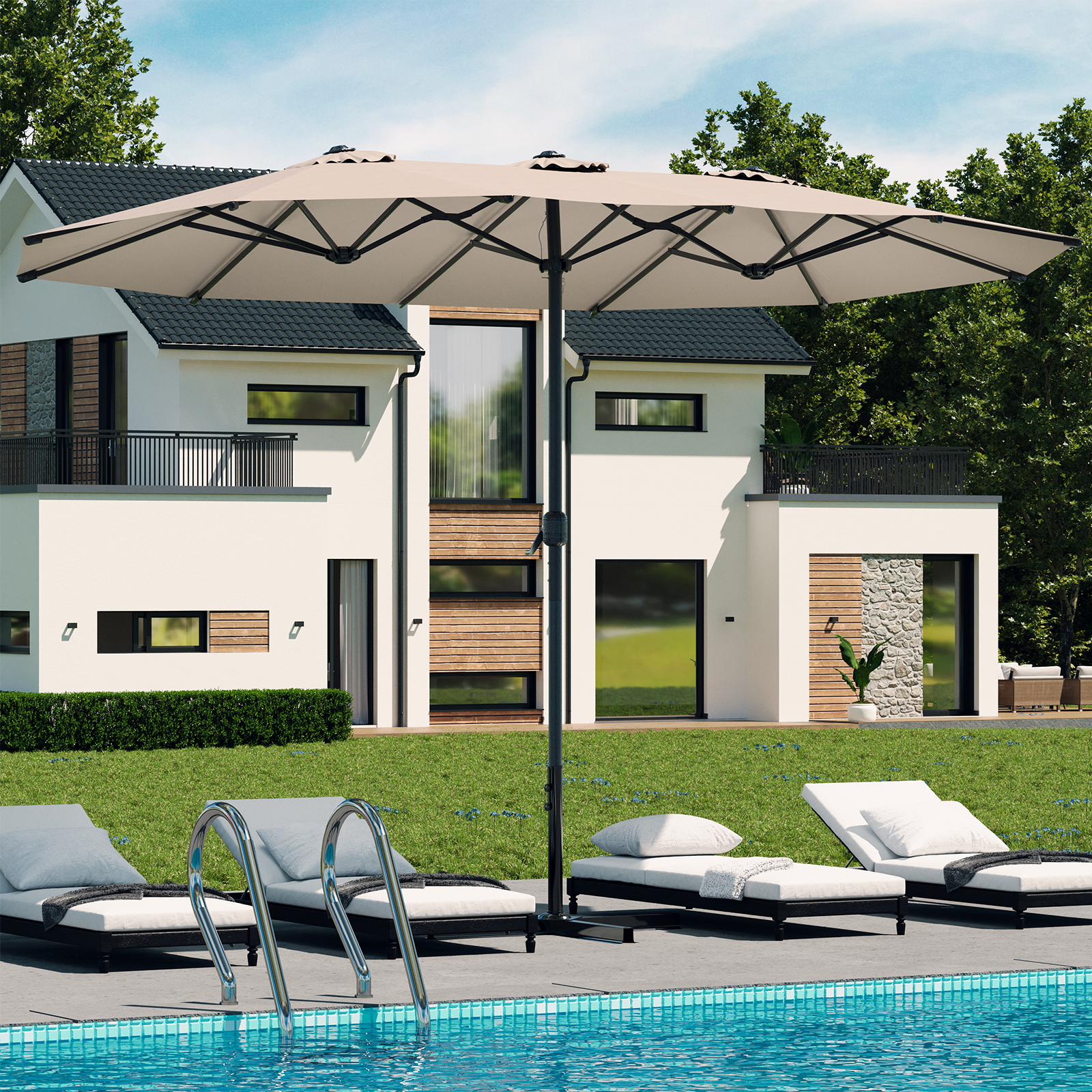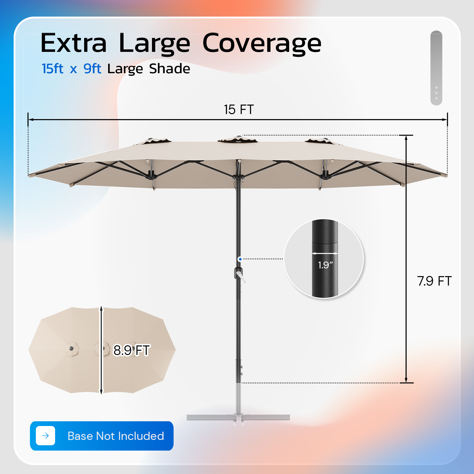AECOJOY 15x9ft Double-Sided Patio Umbrella, Beige
