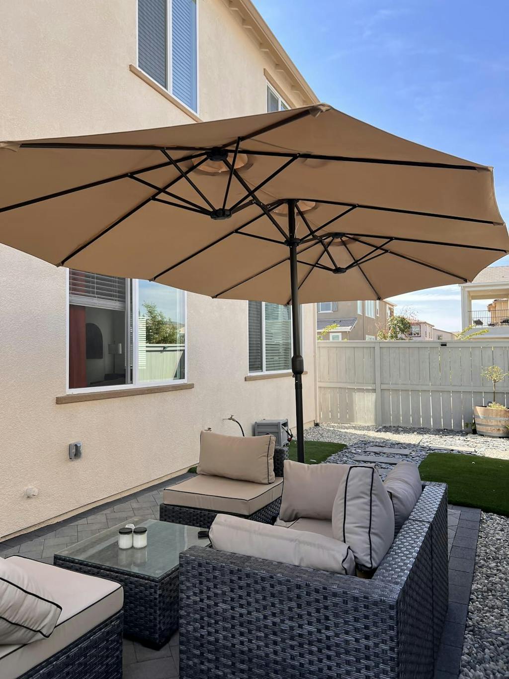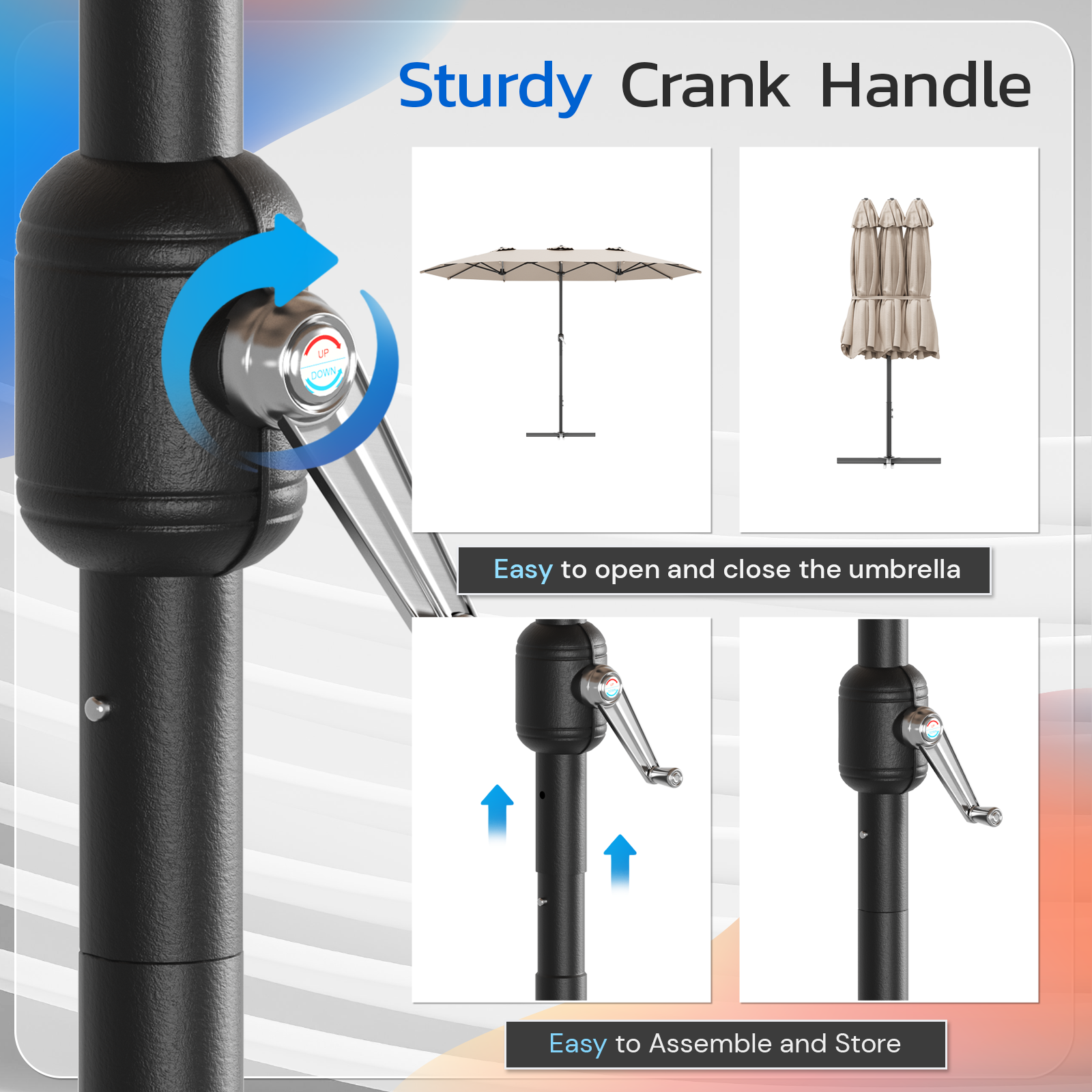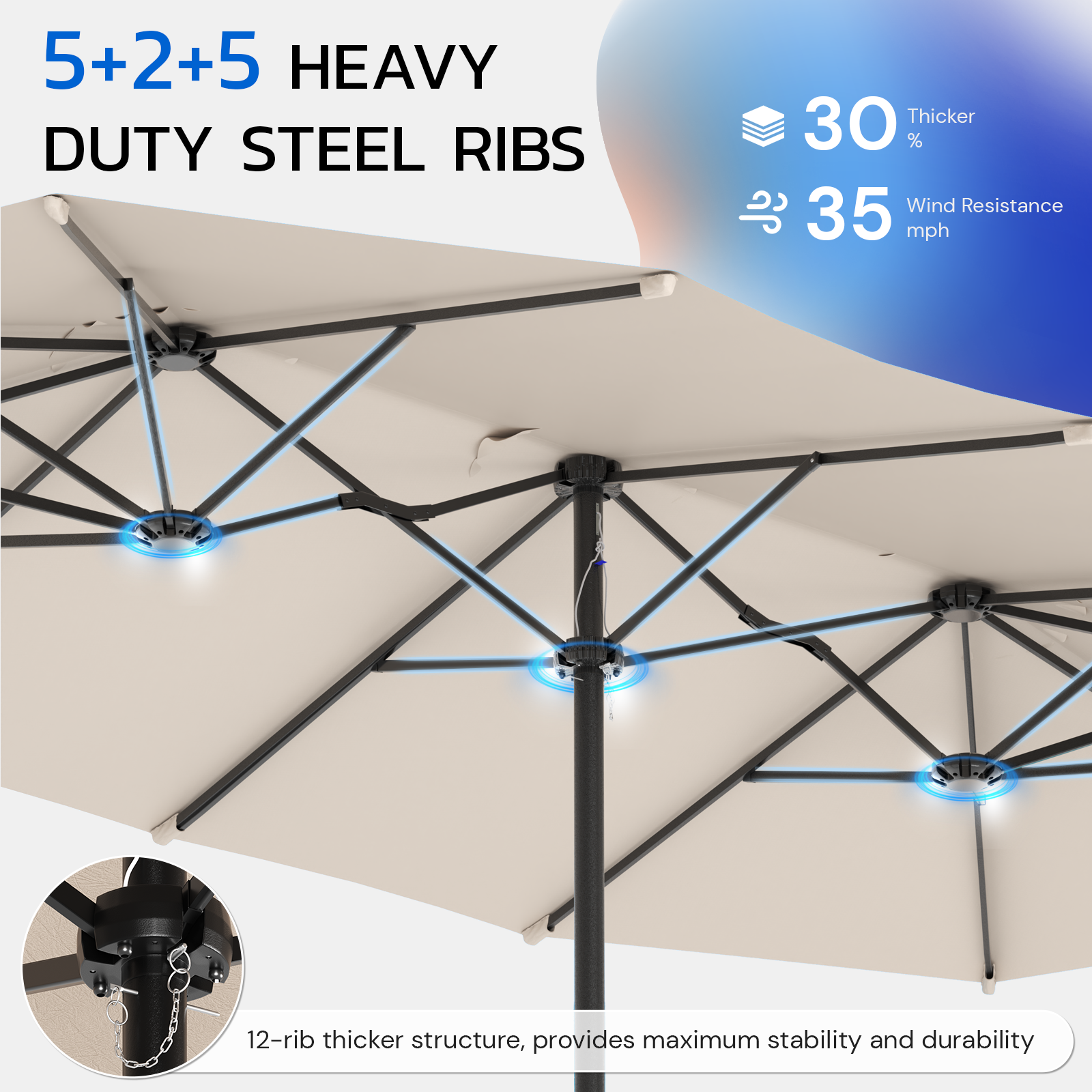 AECOJOY 15x9ft Double-Sided Patio Umbrella, Beige
