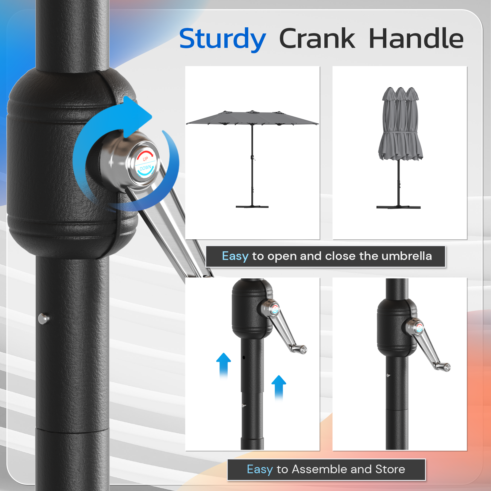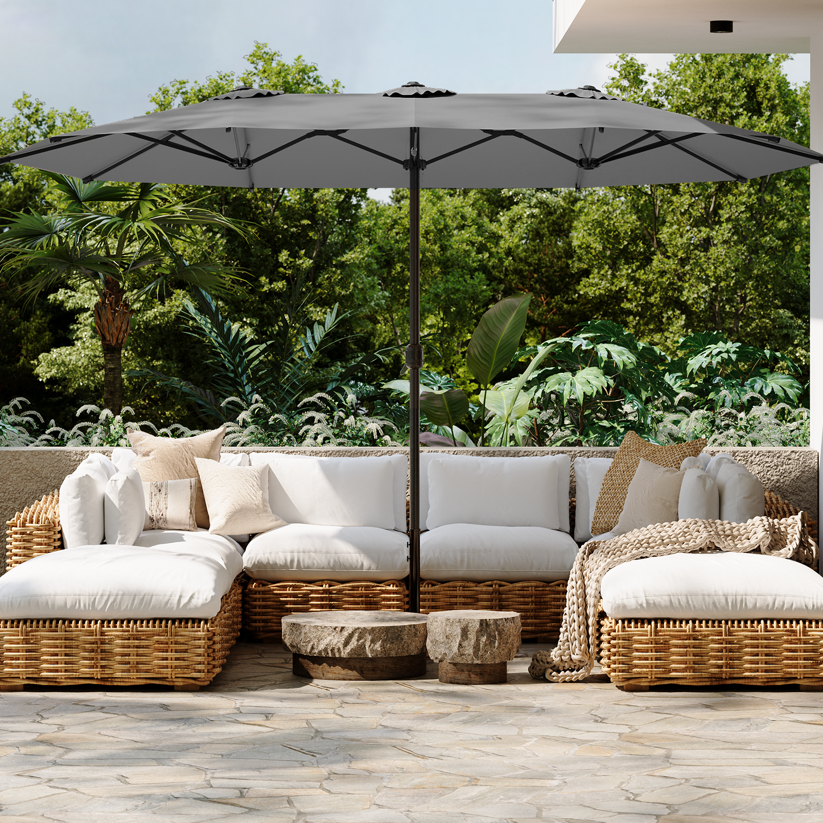 AECOJOY 15x9ft Double-Sided Patio Umbrella, Dark Gray