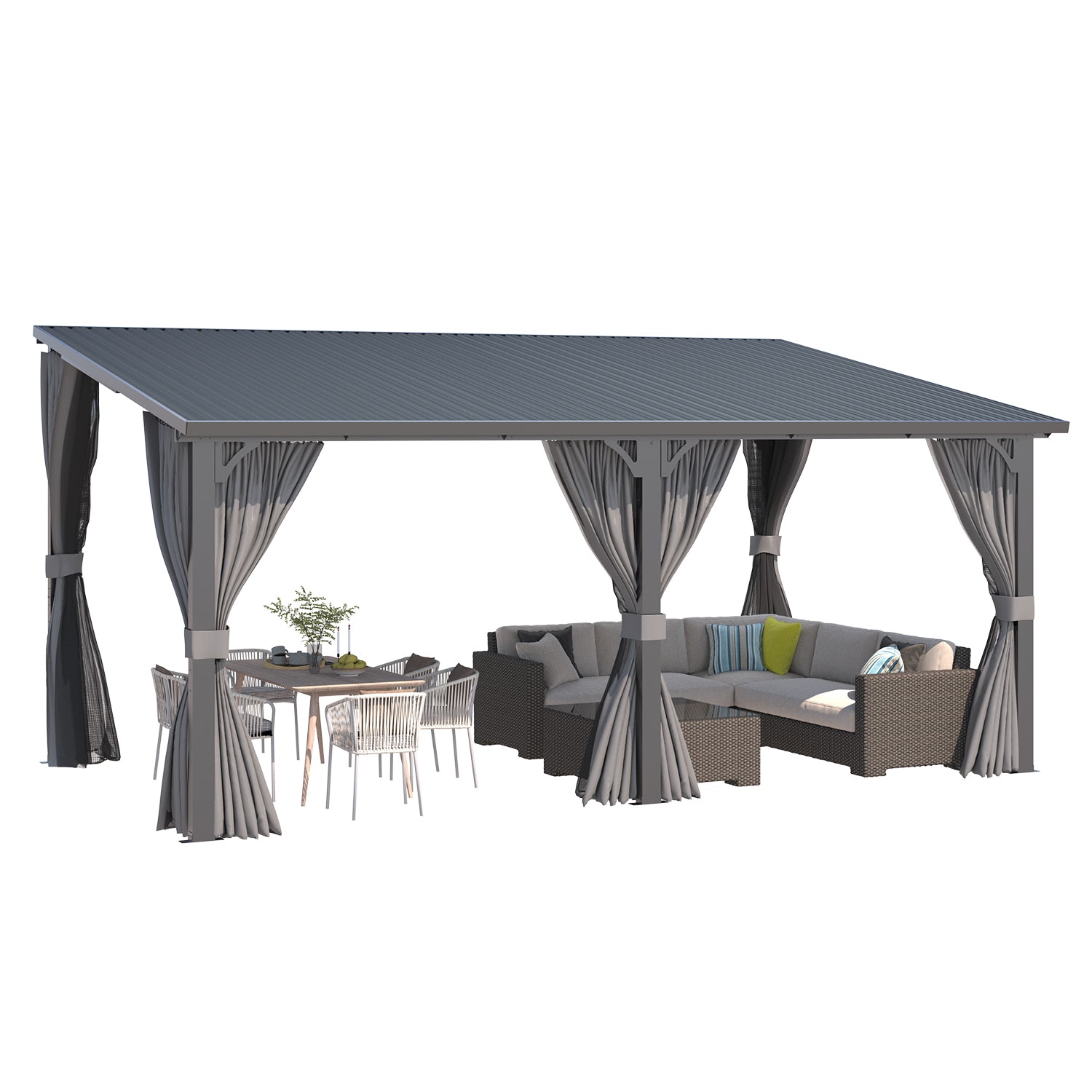 AECOJOY 16×10 ft hard-top gazebo with curtains & netting — durable outdoor shelter with privacy curtains and insect-protecting netting, perfect for patios, decks, or backyard lounging.