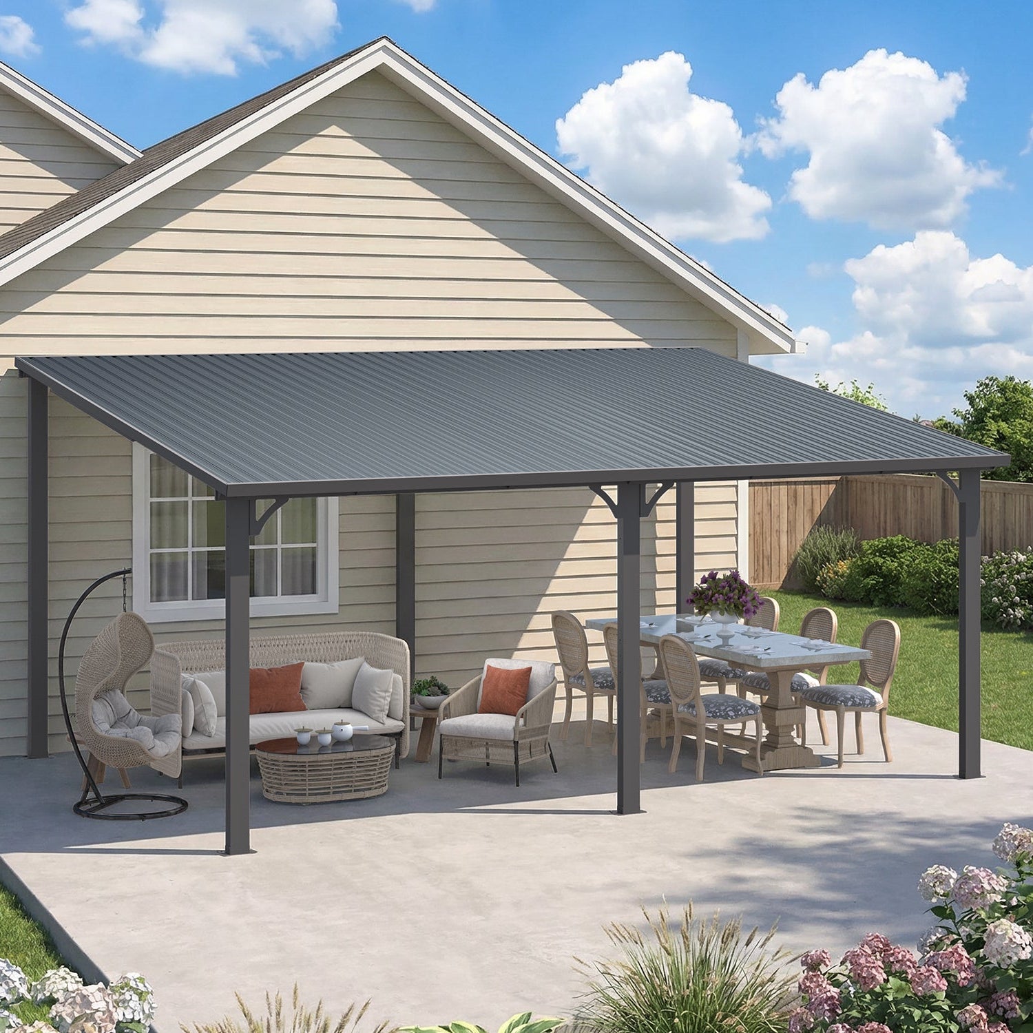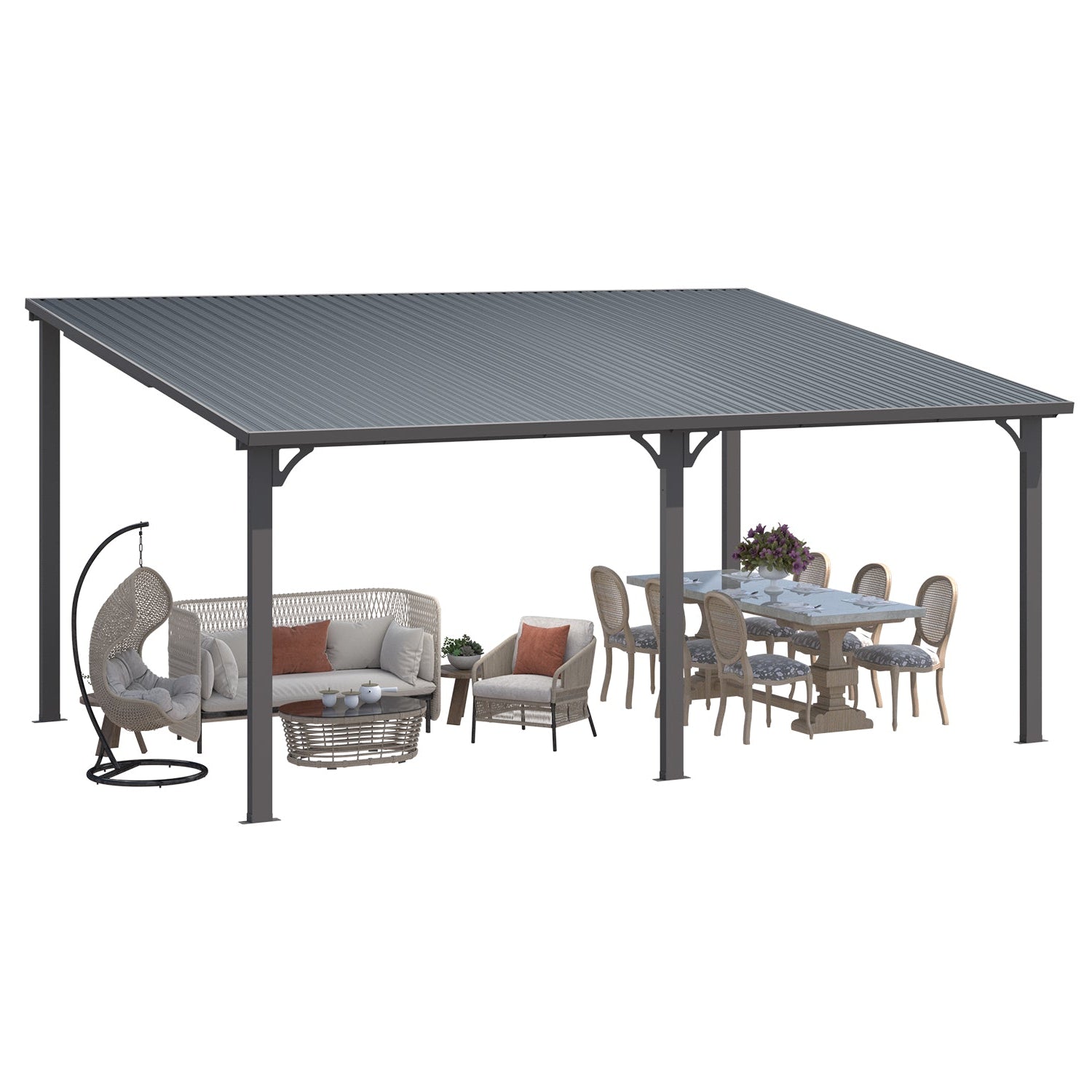 AECOJOY 16×12 ft hard-top outdoor pergola gazebo — durable metal lean-to shelter with weather-resistant roof. Perfect for patios, decks, gardens, and backyard entertaining.
