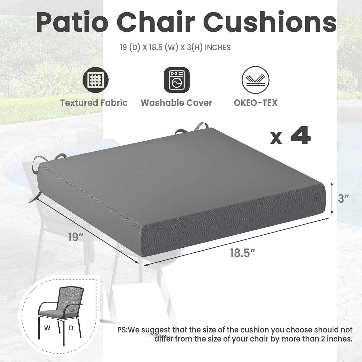 AECOJOY Outdoor Chair Cushions, 19 x 19 x 3 Inch Seat Cushions for Patio Furniture, Splashproof & Fade Resistant, Beige&Dark Grey