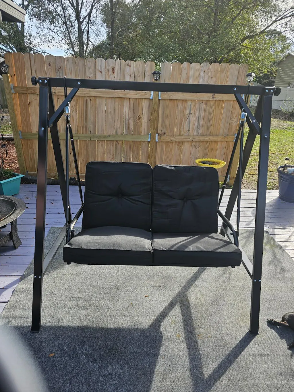 AECOJOY 2-Seat Porch Swings with Adjustable Canopy, Black