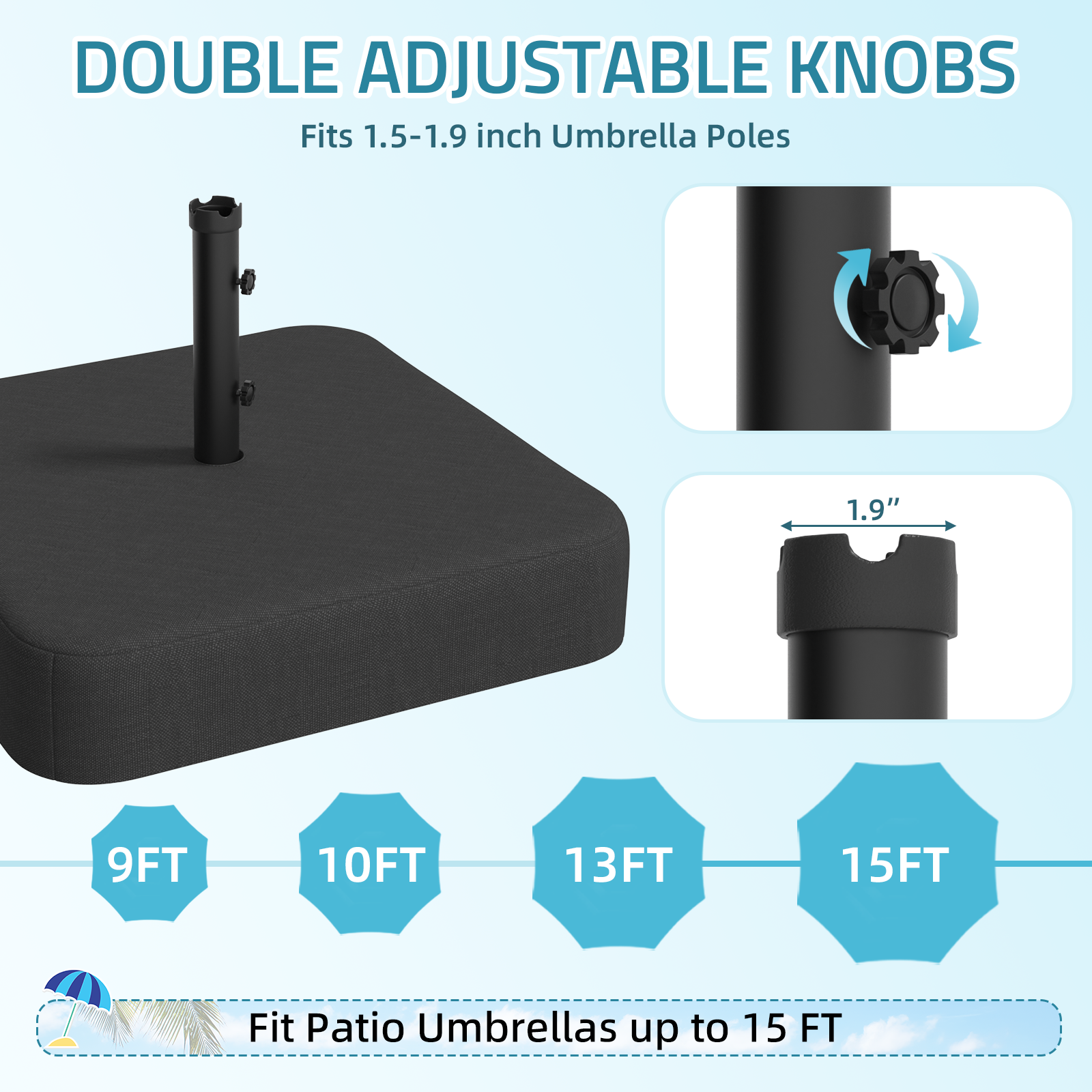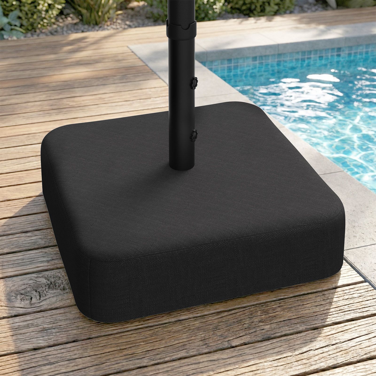AECOJOY 220 lb patio umbrella base with sandbags — heavy-duty, stable support for outdoor umbrellas. Keeps shade secure in wind on patios, decks, and yards.