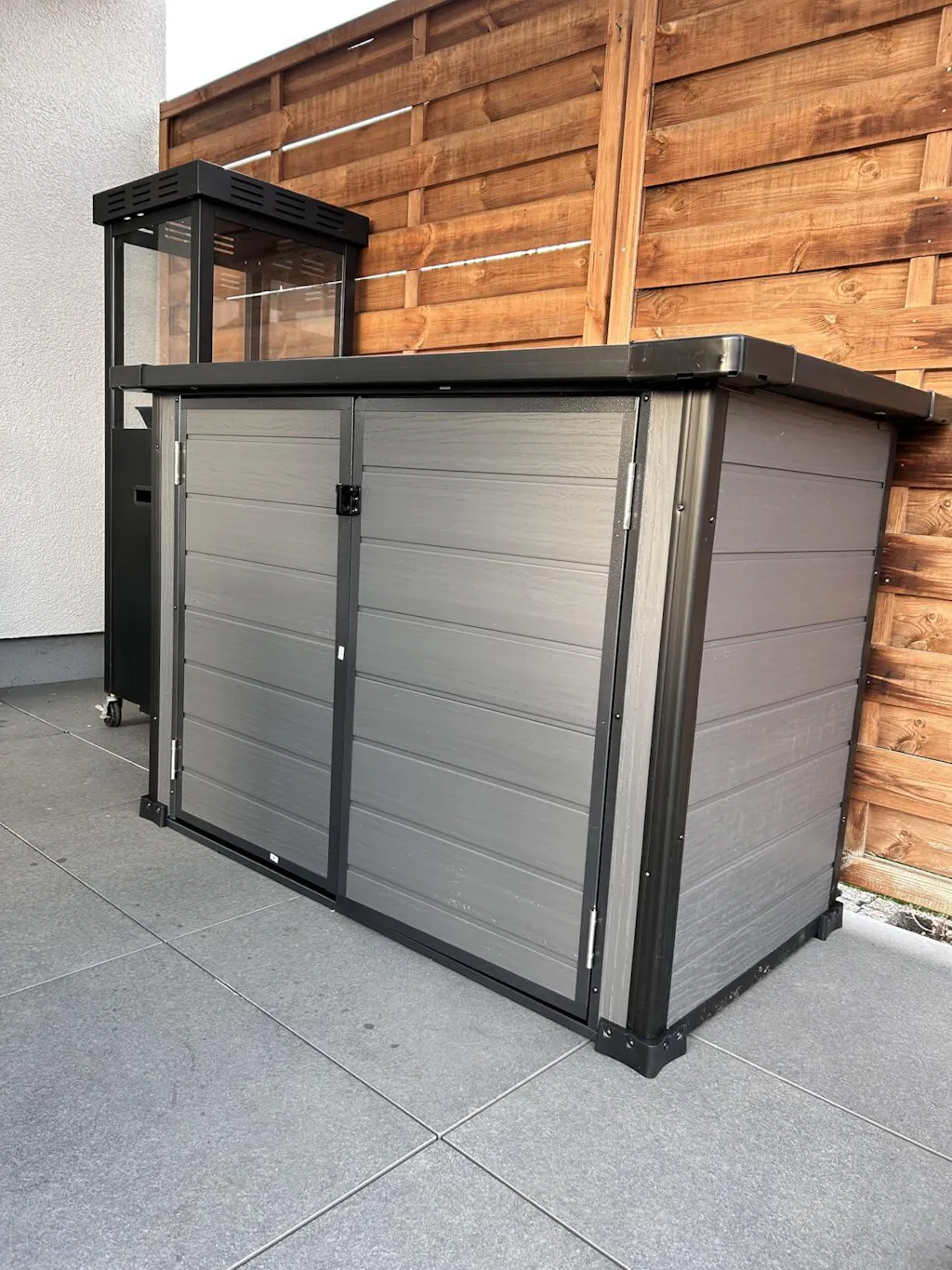 AECOJOY 23 Cu Ft resin outdoor storage cabinet — waterproof, weather-resistant storage with shelves. Keeps patios, gardens, or garages tidy and organized.