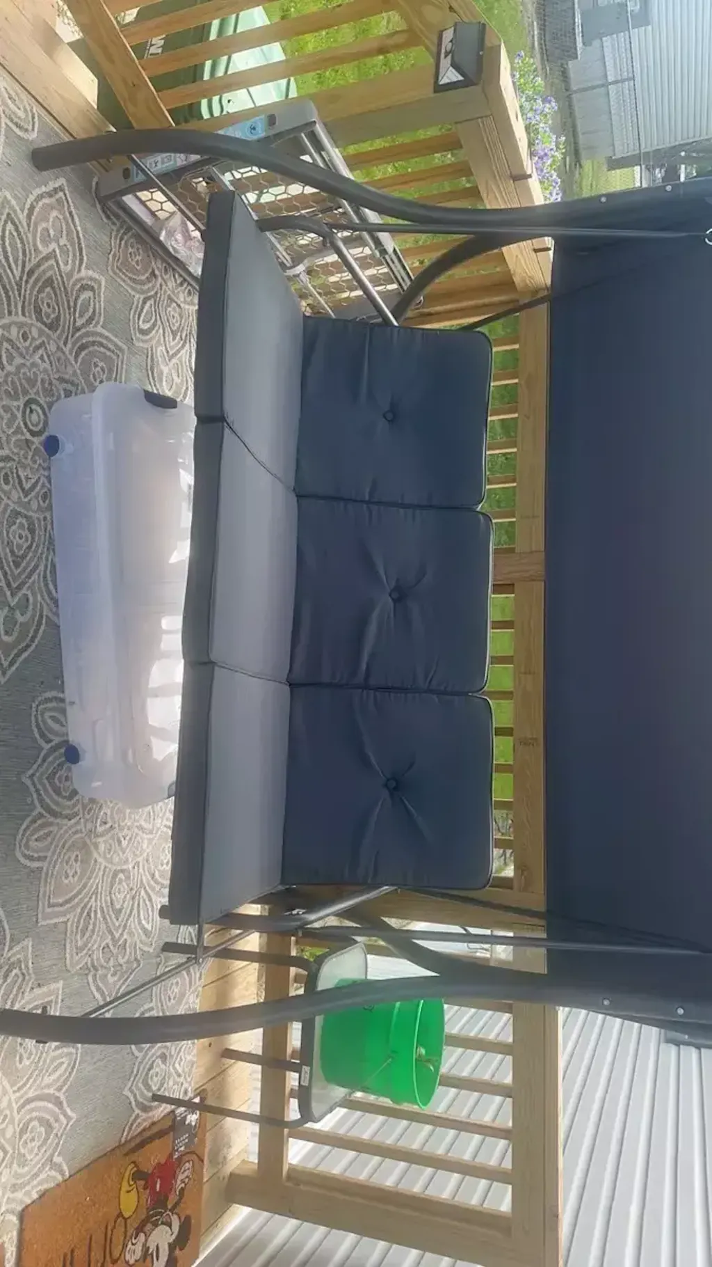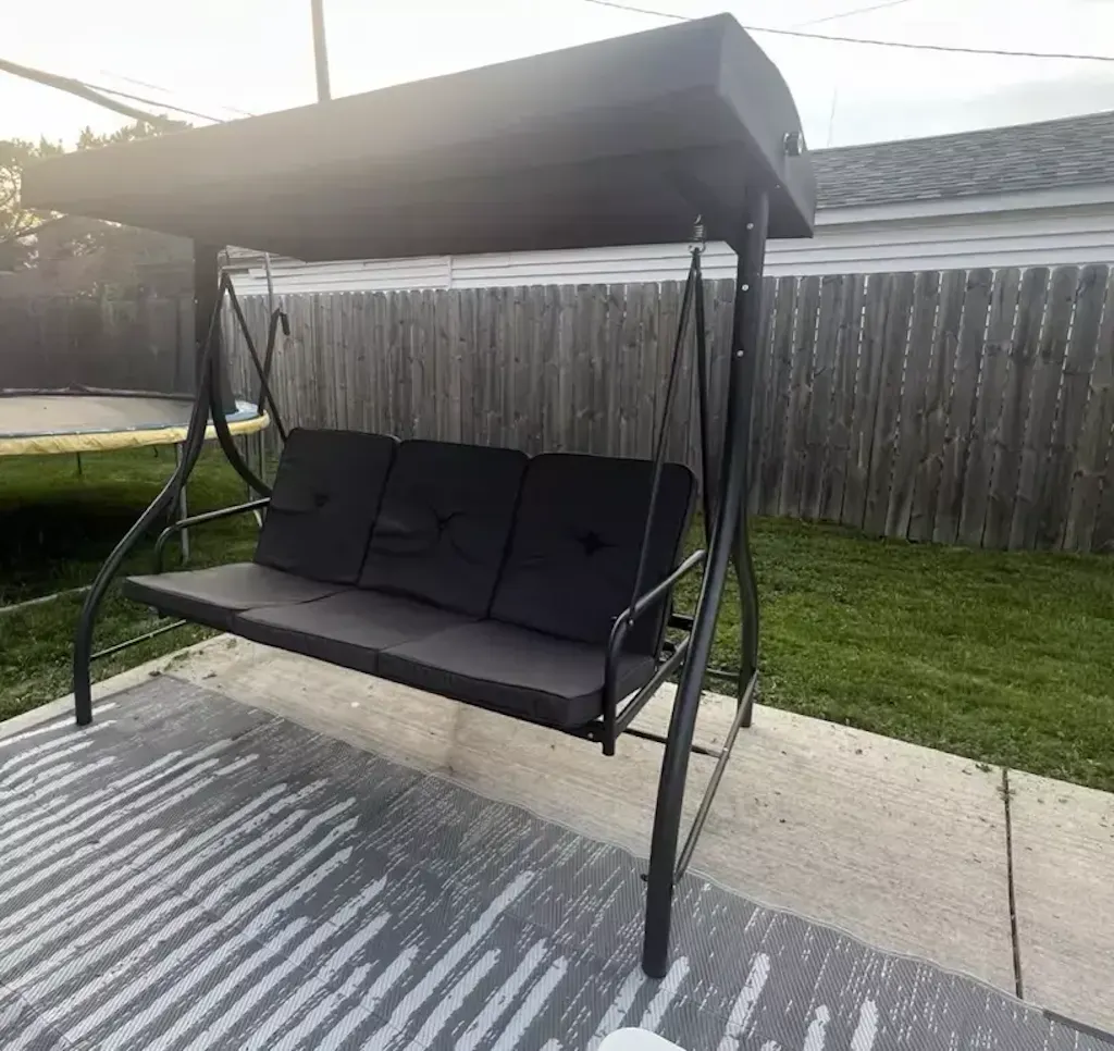 Bring timeless elegance and comfort to your patio with this black porch swing. Designed with a durable metal frame porch swing structure, it offers a sturdy, stylish seating solution for your outdoor space. The spacious 3 seat porch swing easily accommodates family and friends, while the adjustable porch swing with canopy provides much-needed shade from the sun. Whether you're looking to create a cozy front porch swing setup or enhance your backyard with a versatile porch glider swing, this model offers exceptional comfort with its cushioned seats and smooth gliding motion. Its weather-resistant materials ensure long-lasting beauty, making it one of the best choices for a patio swing with canopy that seamlessly combines form and function. Ideal for lazy afternoons, reading sessions, or casual conversations, this swing elevates your outdoor experience with ease and style.