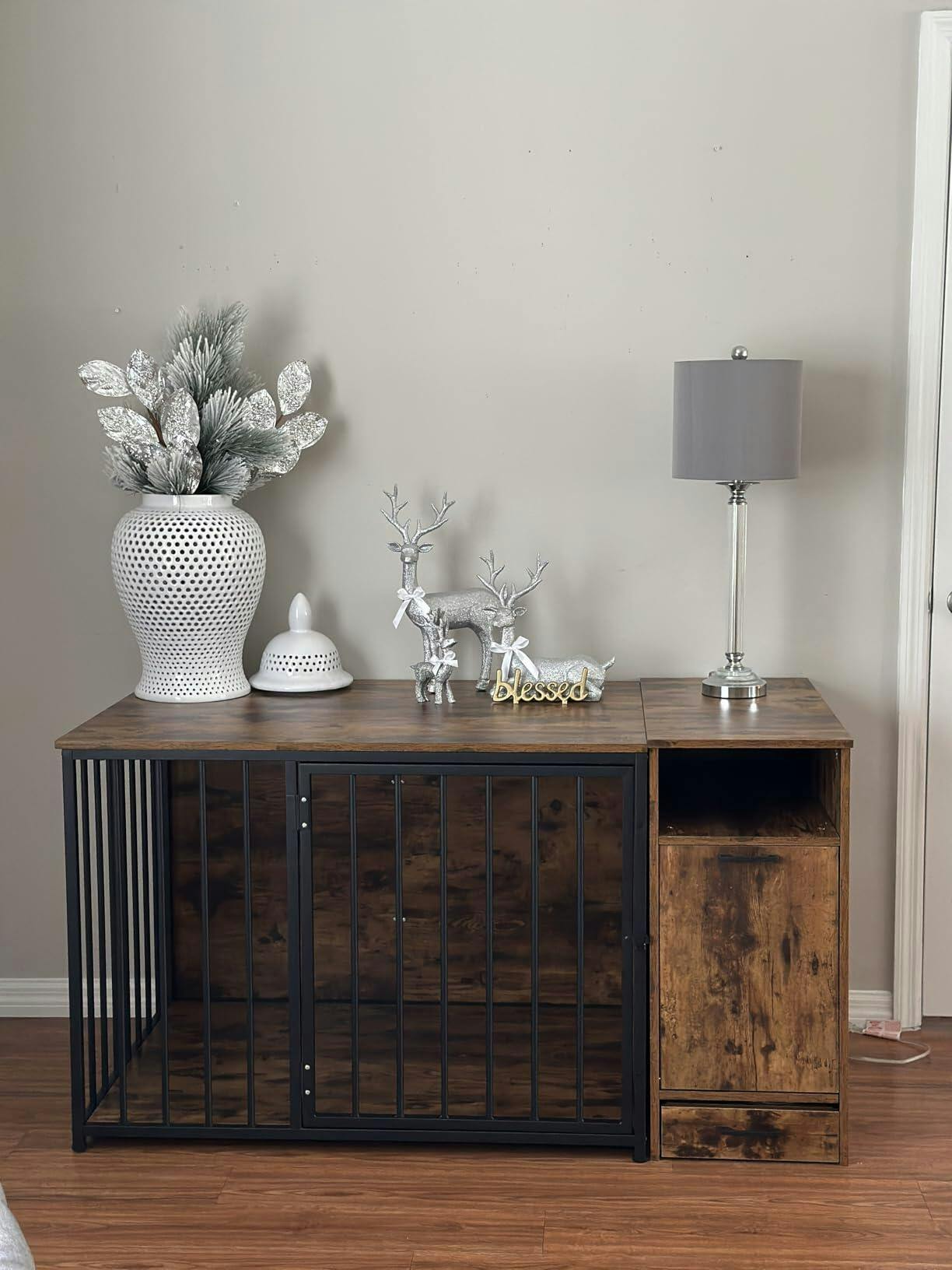 AECOJOY Furniture-Style Dog Crate with Feeding Station