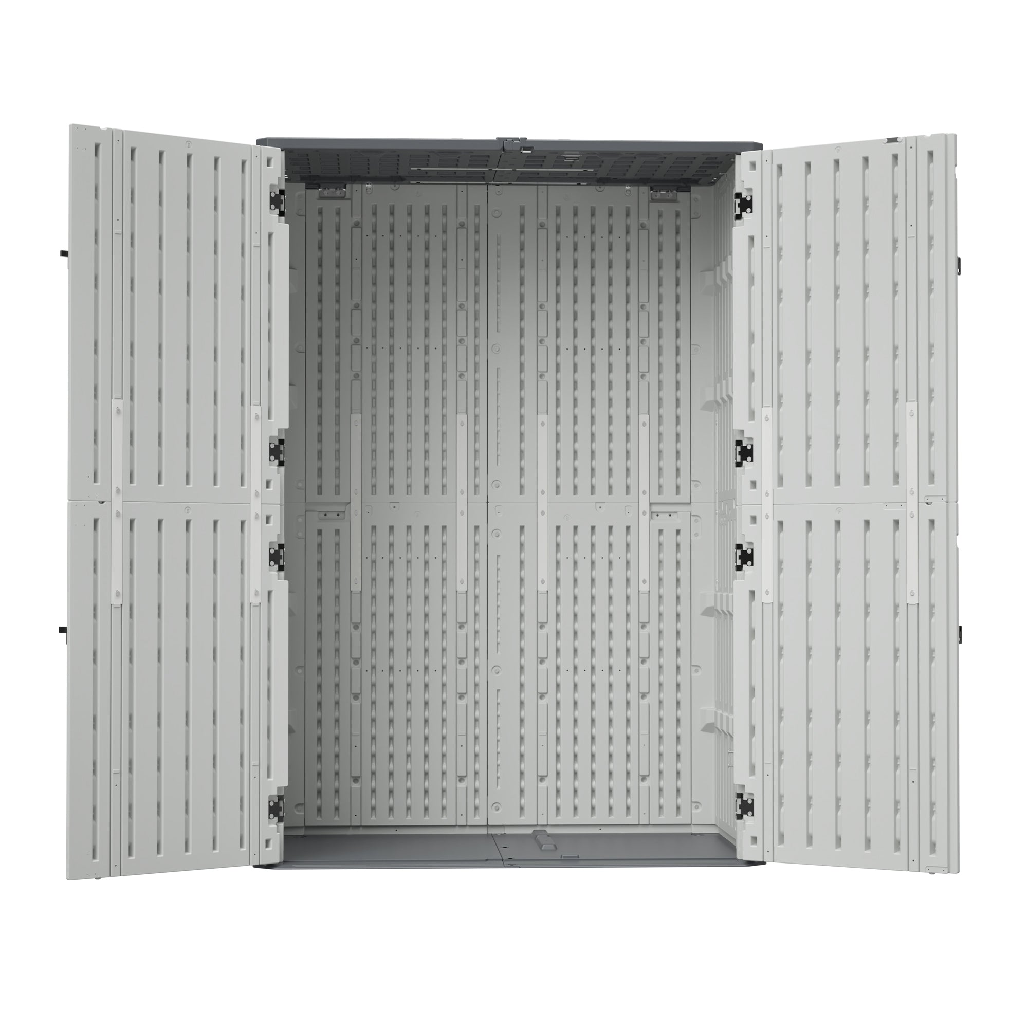 AECOJOY 61.6 Cu.ft Outdoor Resin Storage Shed with Easy Lift Hinges, Weatherproof Tall Unit with 4 Doors