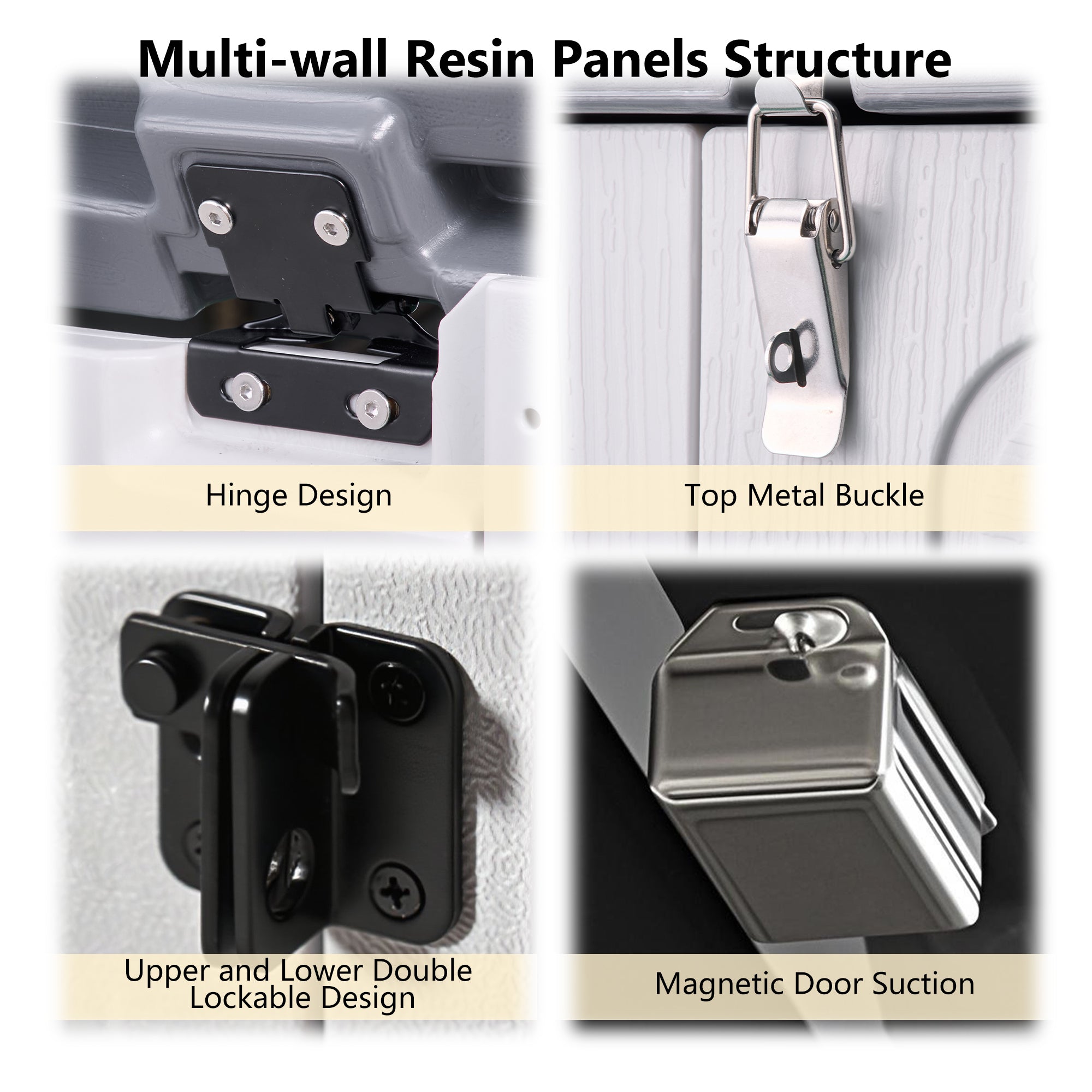 - Four Openable Doors Storage Cabinet: All four doors of this storage cabinet can be opened, equipped with upper and lower door connection strips, and connected by a linking bar to join the upper and lower storage boxes, enhancing stability, making it especially suitable for storing heavy items or frequently used items.
