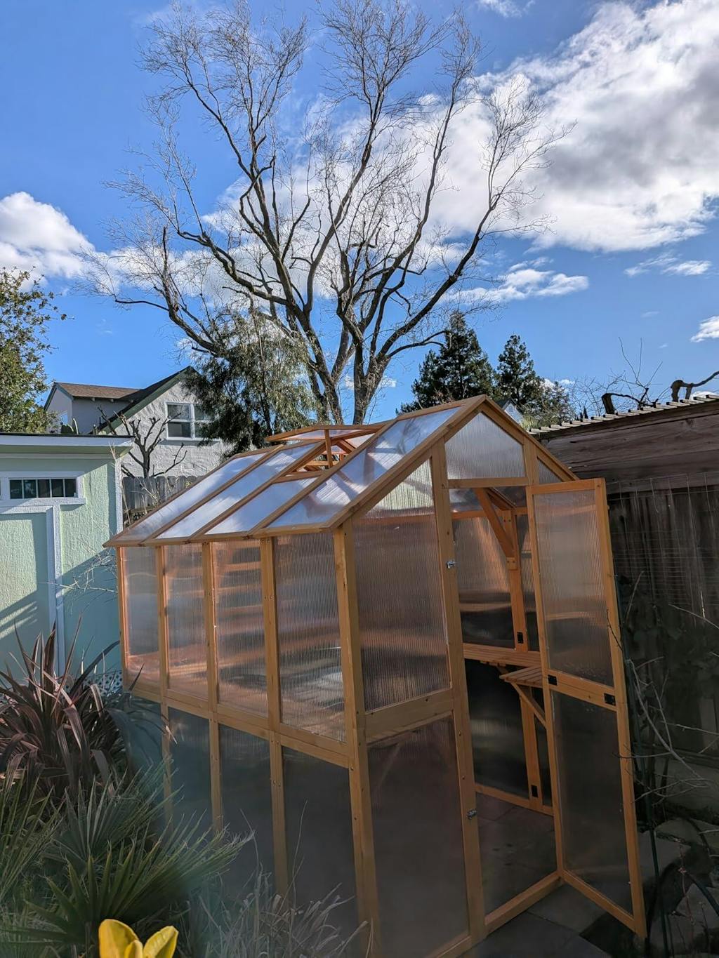 Features an adjustable roof vent for precise airflow control, helping to regulate temperature and humidity inside the greenhouse.