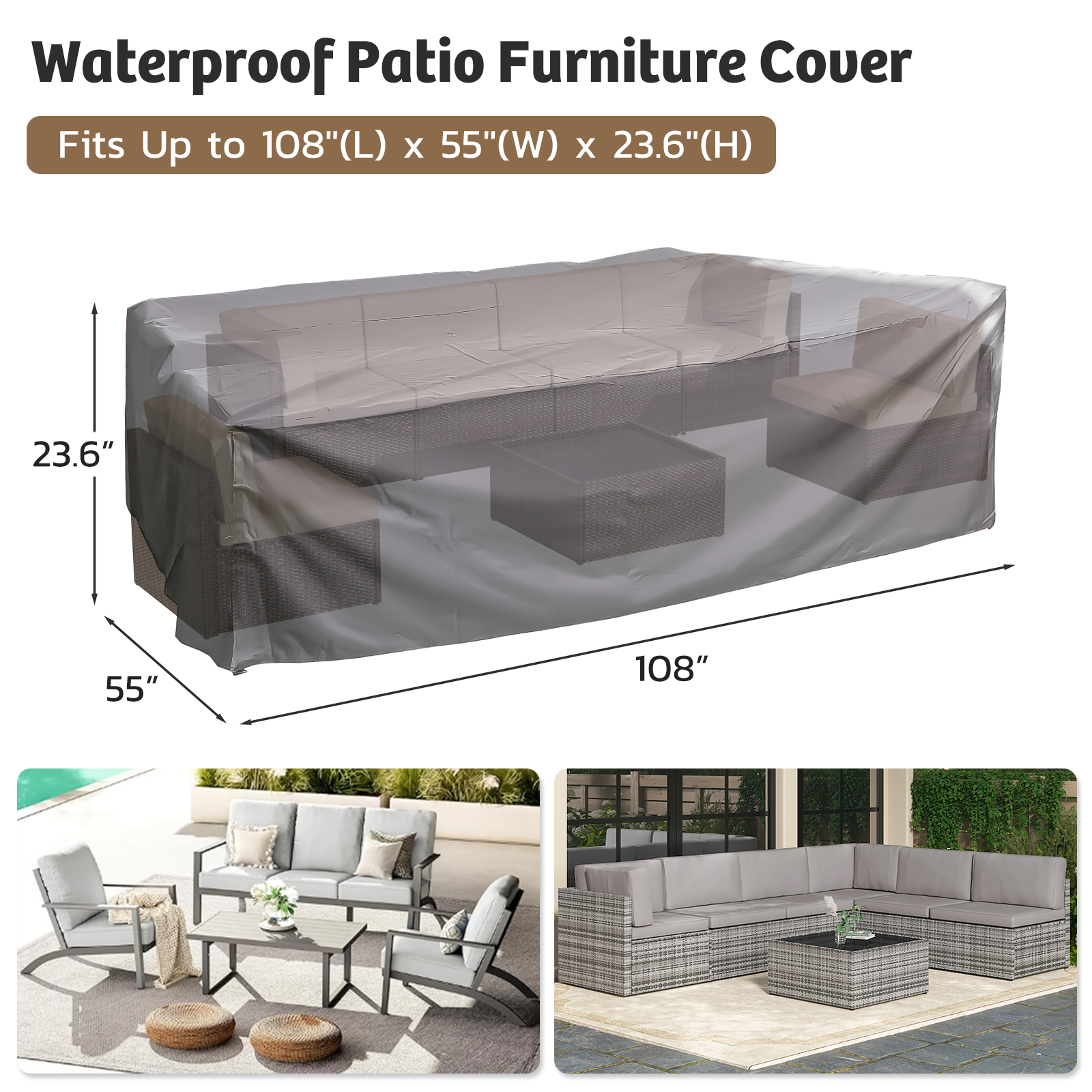 AECOJOY 7 Piece Outdoor Patio Furniture Set with Waterproof Cover, Brown & Beige