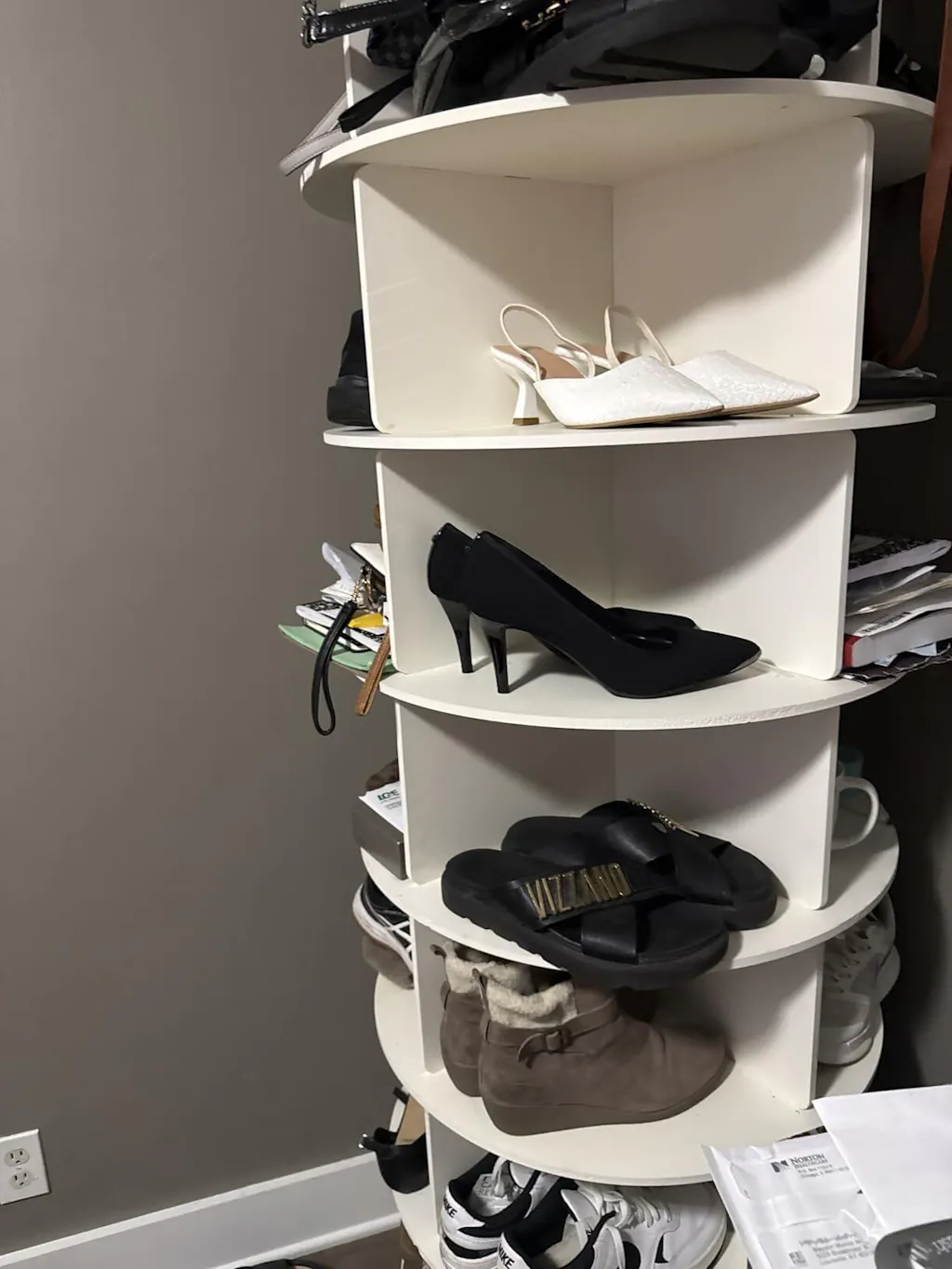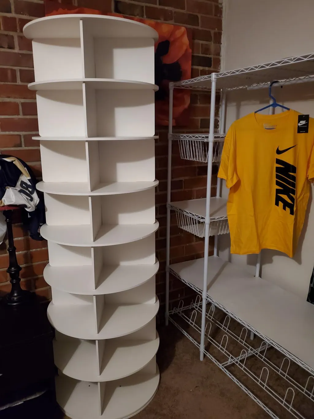 The AECOJOY 8 Tier Rotating Shoe Rack Tower is the perfect solution for organizing your footwear collection. This innovative spinning shoe display, designed like a Lazy Susan, offers a stylish and efficient way to store up to 32 pairs of shoes while maximizing your space.