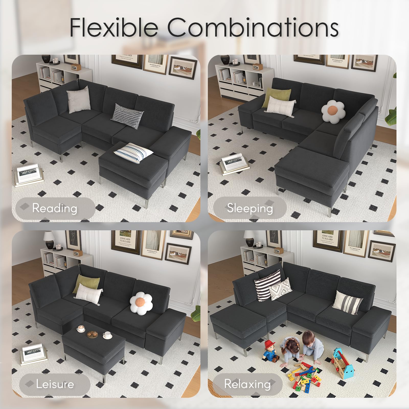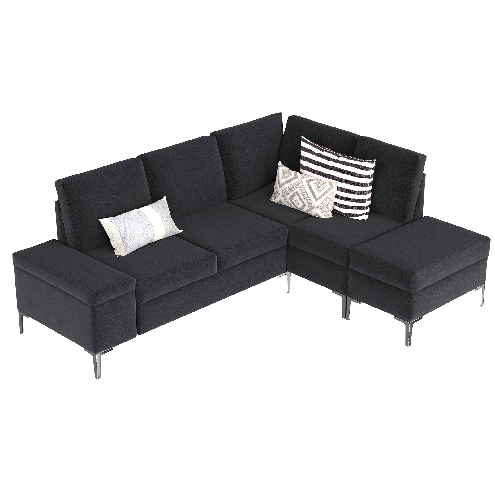 AECOJOY 87" Sectional Couch with Ottoman, Convertible Corner Couches with Armrest Storage, Black