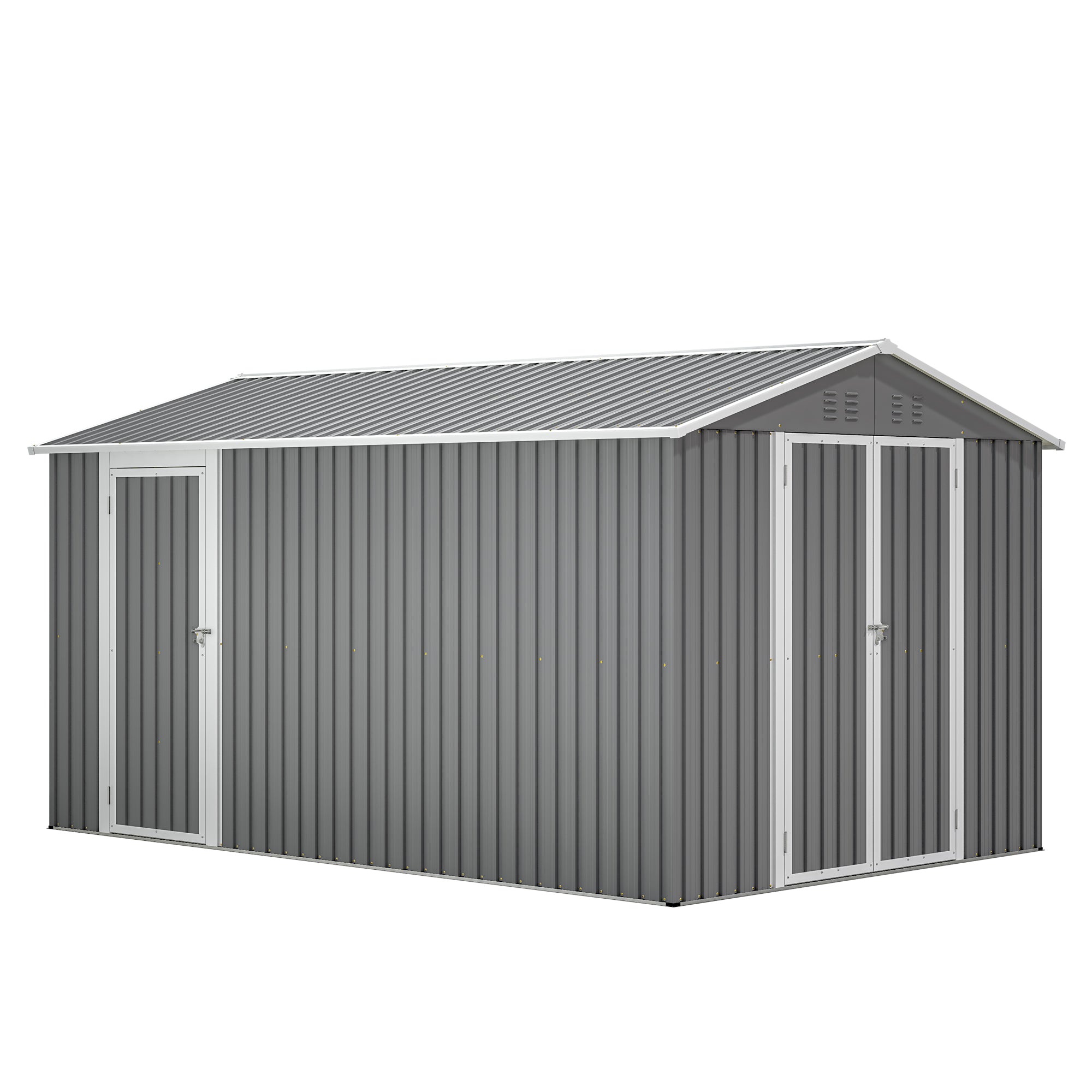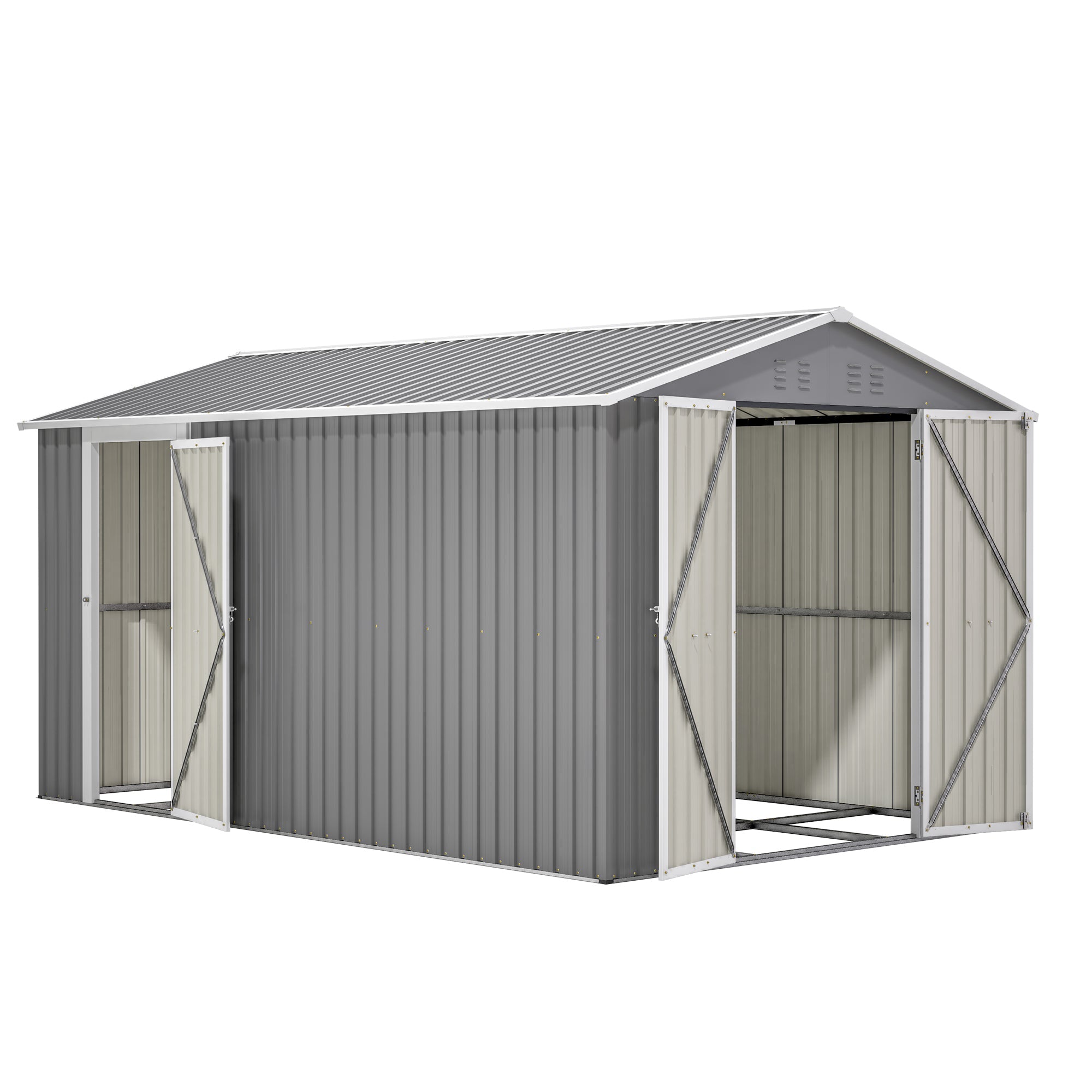 - 3. 【Durable & Secure Design】Built with a sturdy steel frame, lockable doors, a weather-resistant sloped roof, and two ventilation vents, this metal shed keeps your belongings safe while improving air circulation. It’s built to withstand the elements and prevent heat buildup in summer.