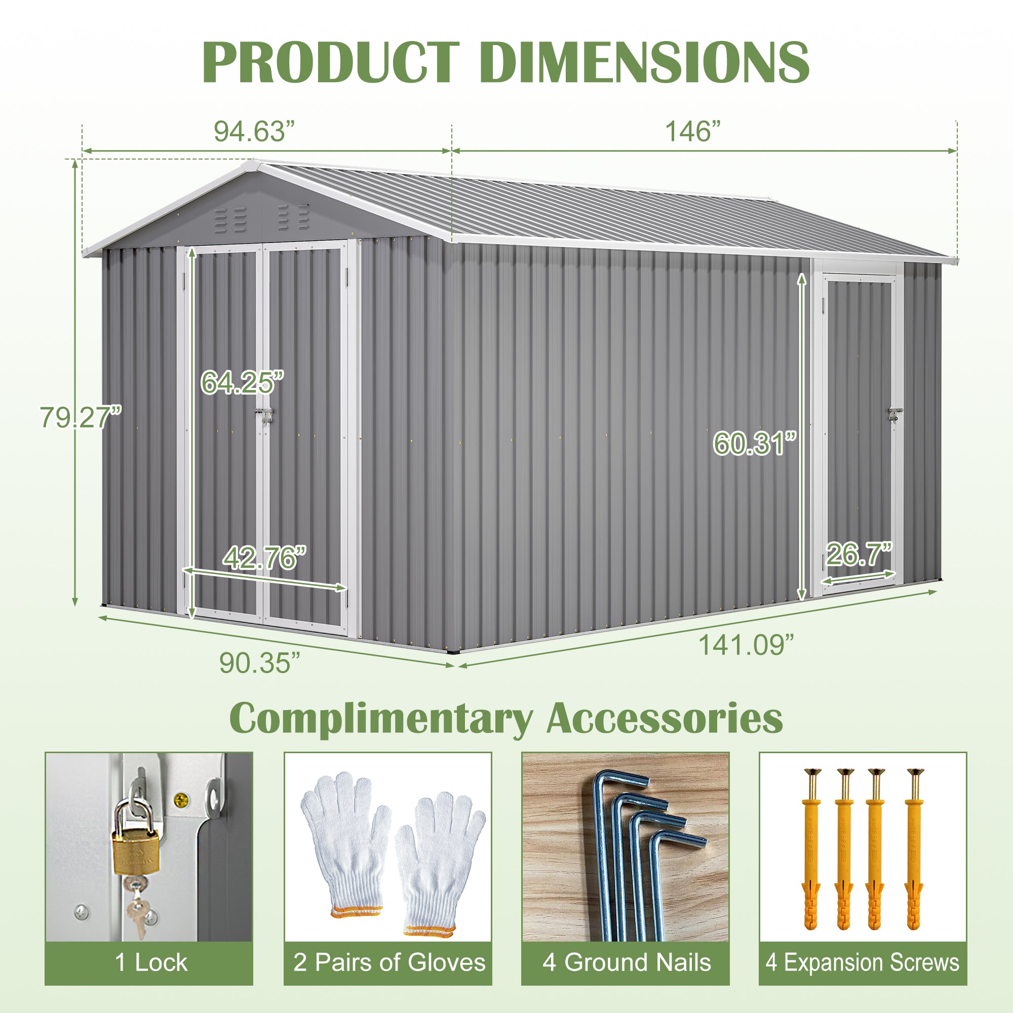 AECOJOY 8x12 FT Outdoor Metal Storage Shed with Additional Side Door, Large Tool Shed with 2 Lockable Doors