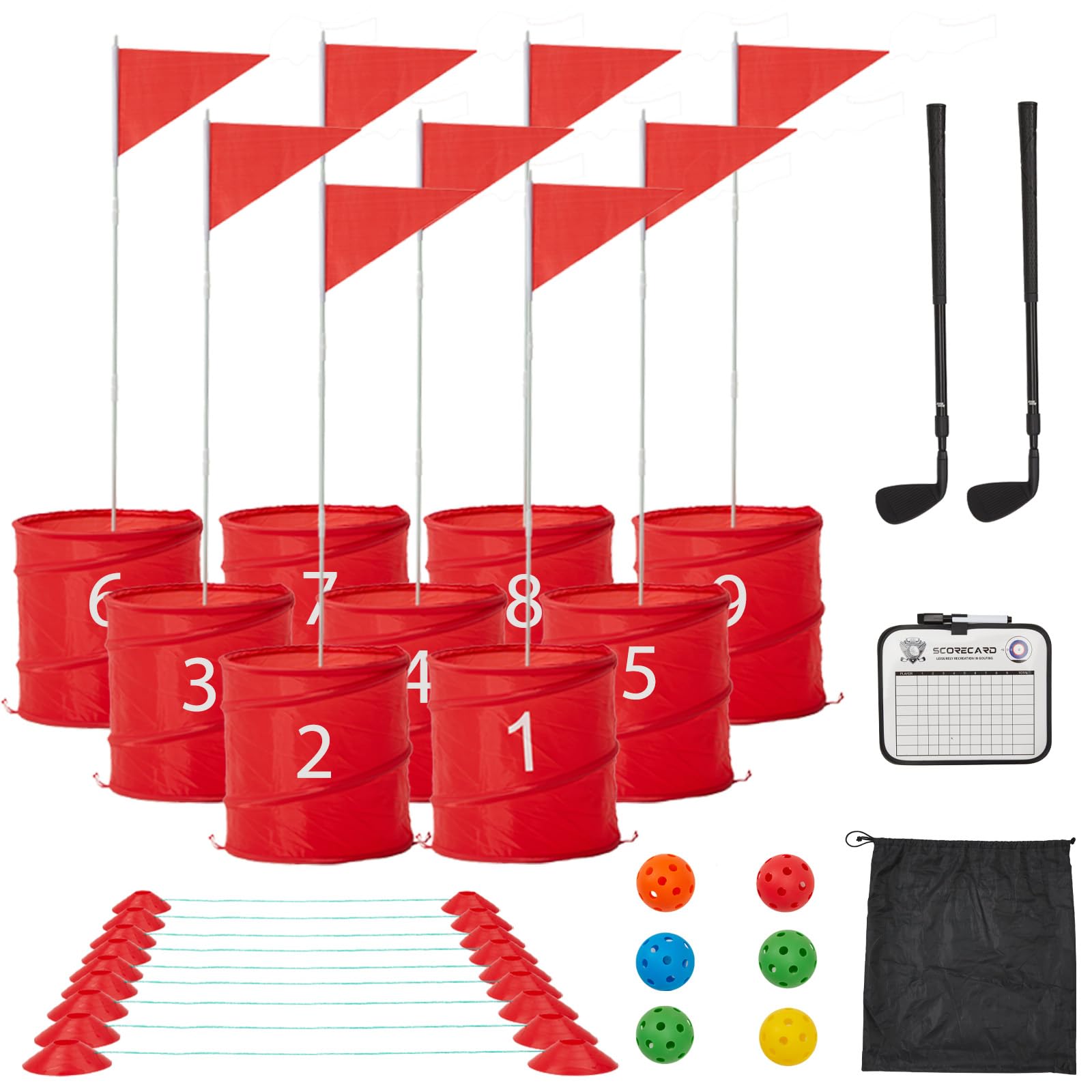 AECOJOY Bucket Yard Golf Game with Clubs 9 Hole Set Portable Low Tide Golf Game, Outdoor Indoor Golf Chipping Games