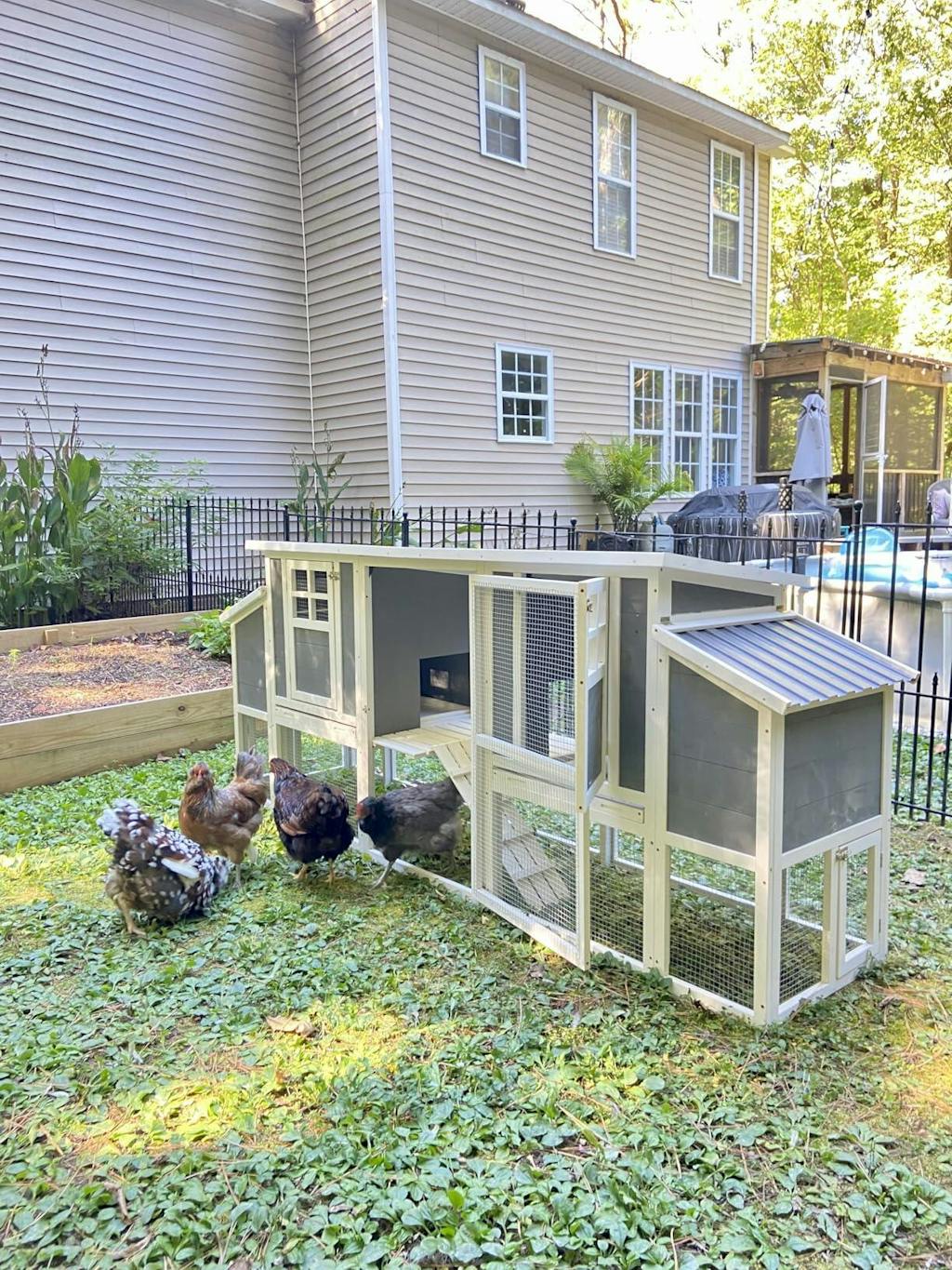 AECOJOY 98'' Extra Large Chicken Coop with Run, Wood Chicken House with 4 Nesting Boxes for 6-8 Chickens
