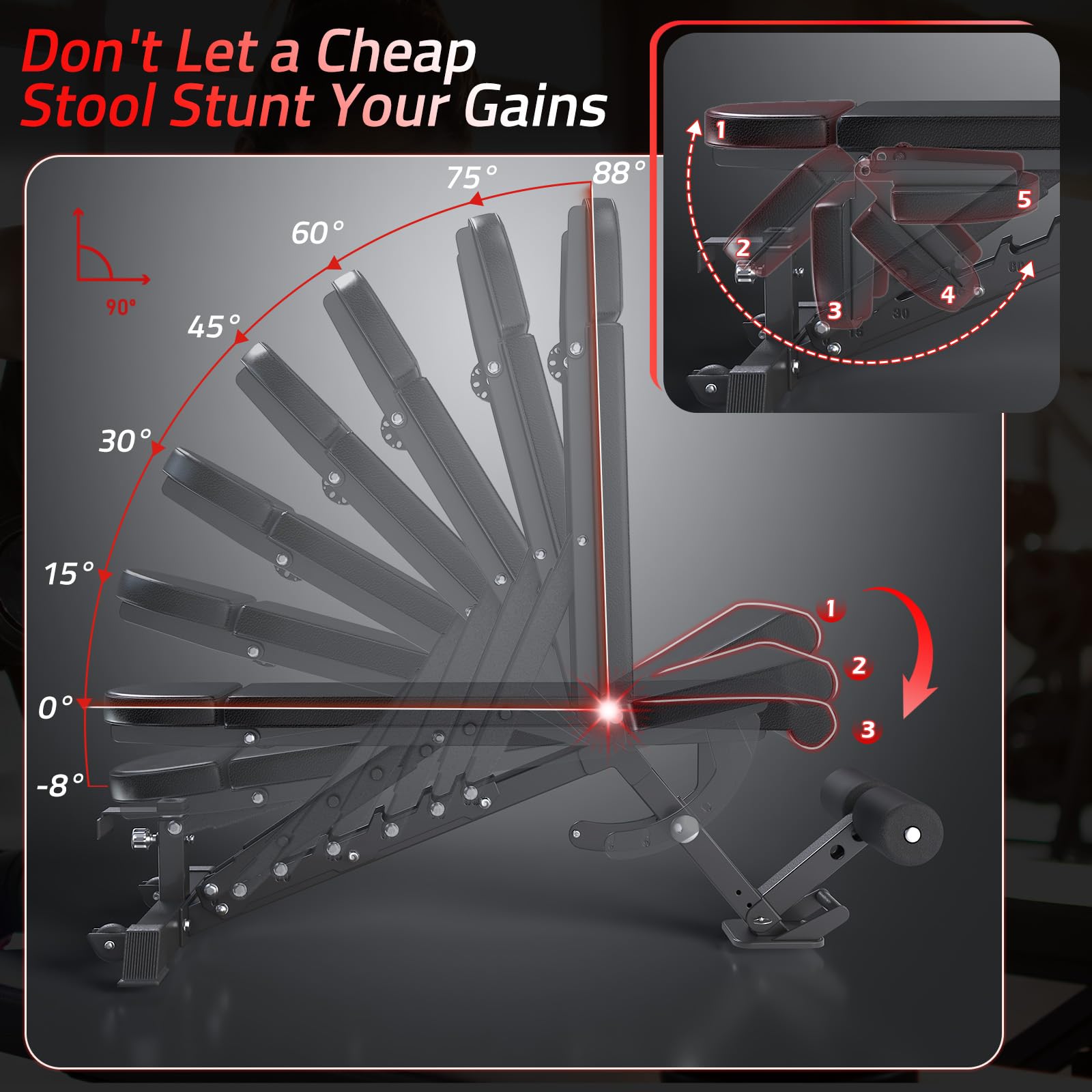 AECOJOY Adjustable Weight Bench for Home Gym, 1300Lbs Capacity