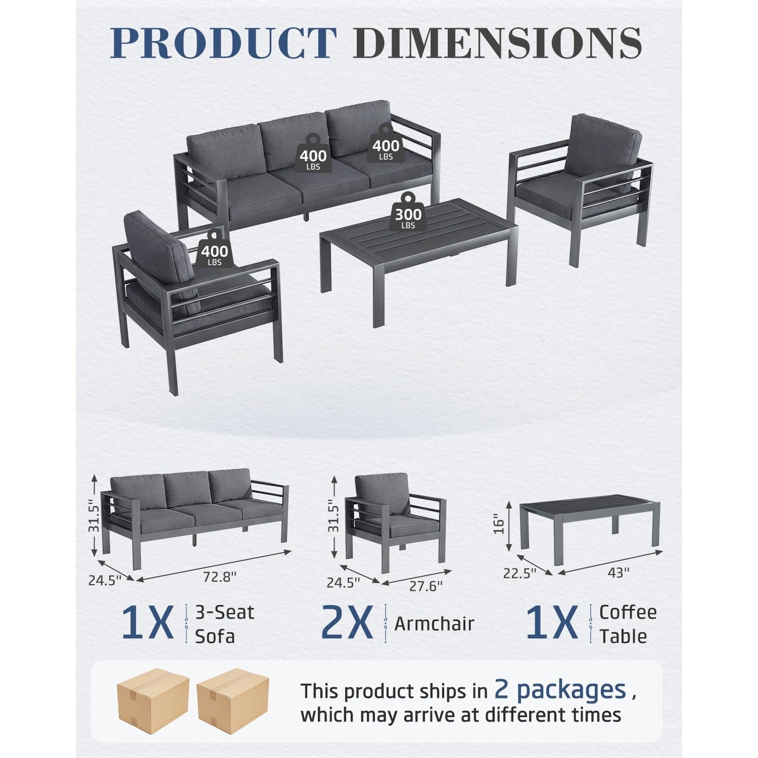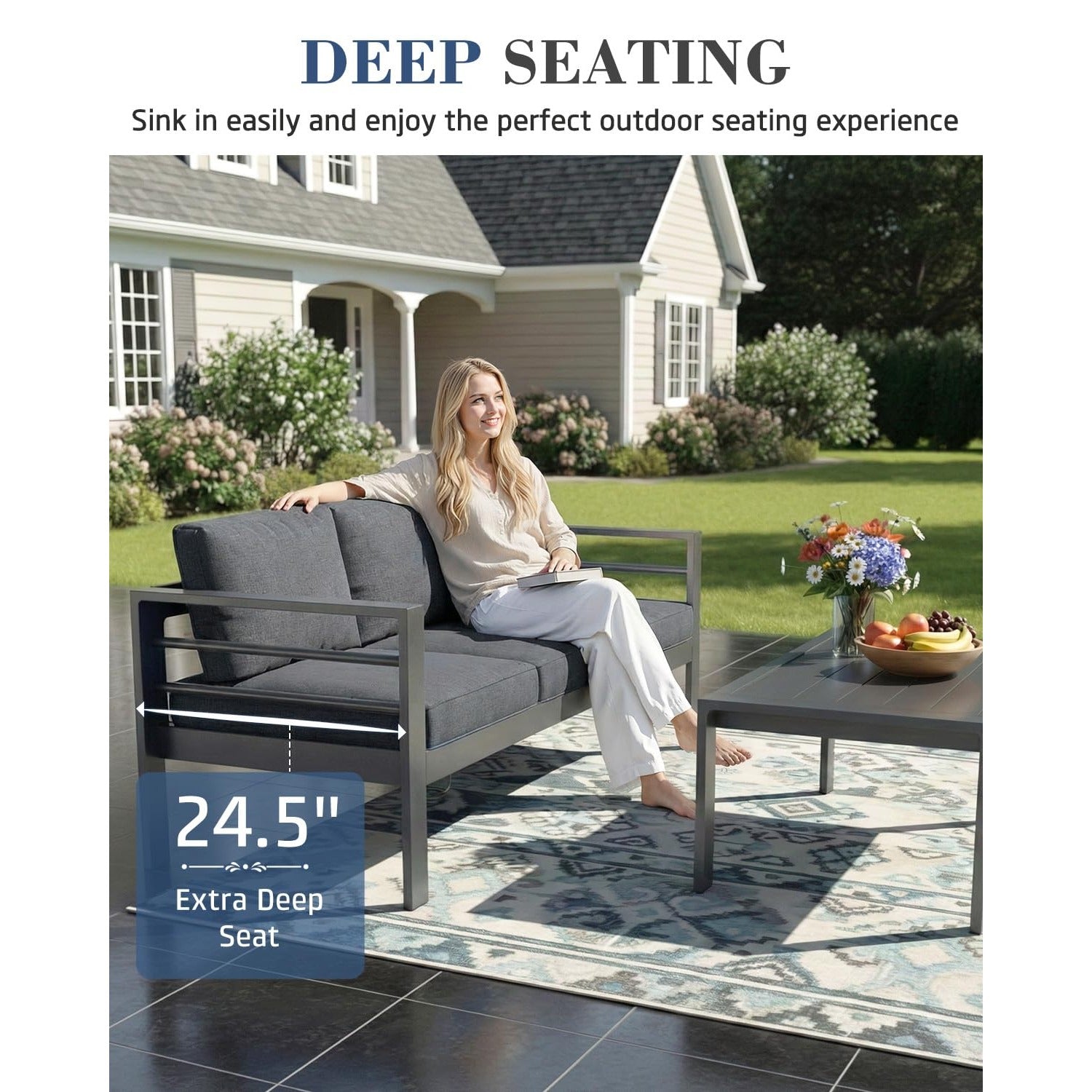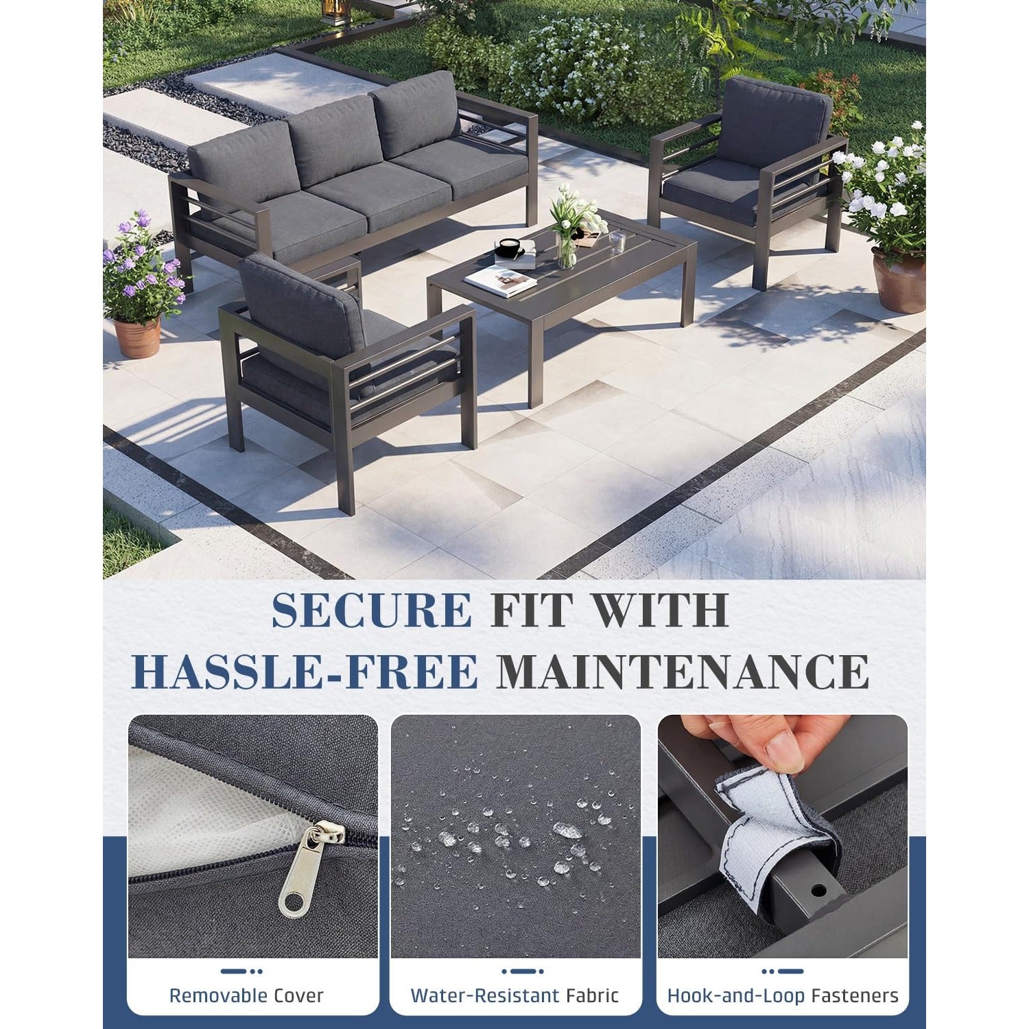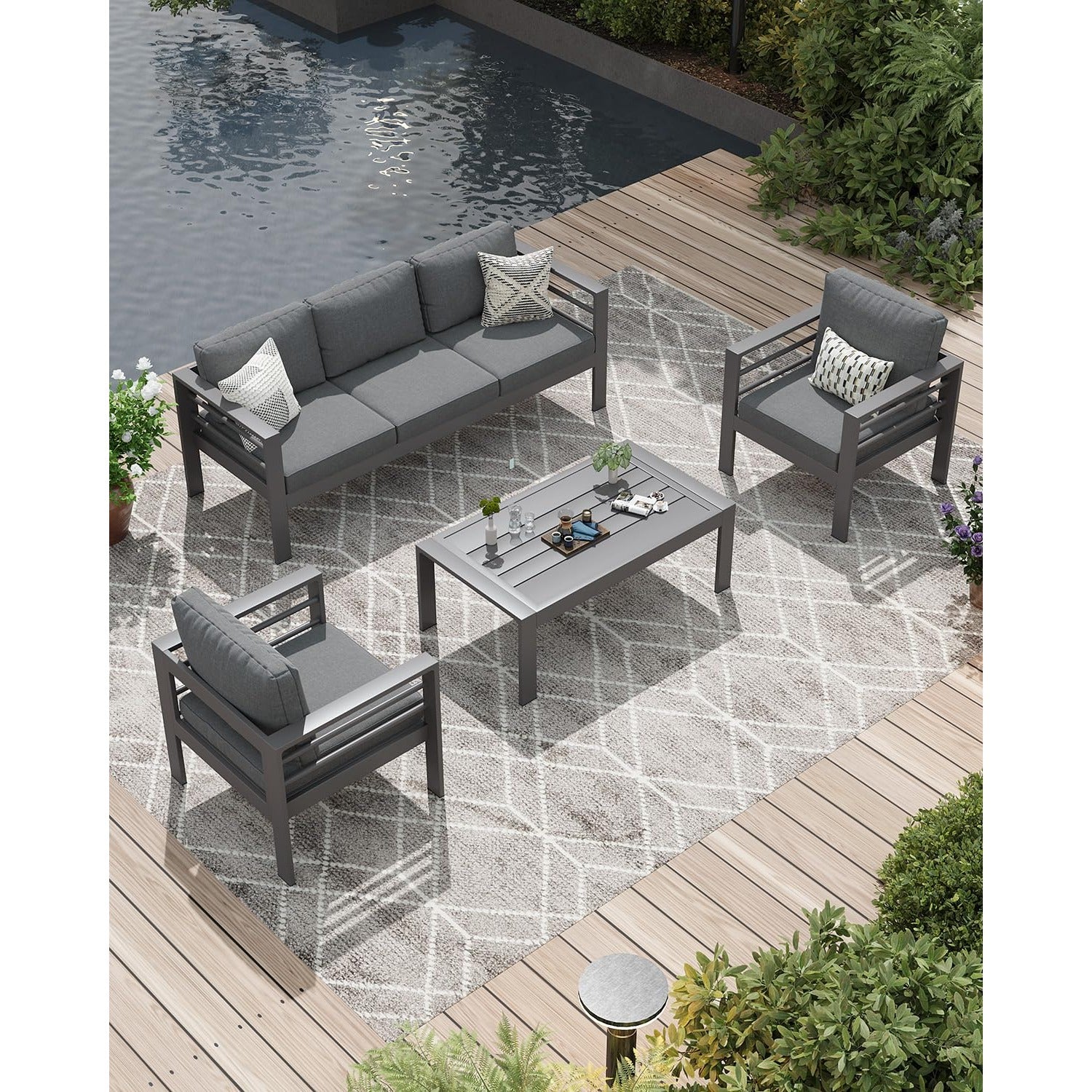 AECOJOY Aluminum Patio Furniture Set, 4 Pieces Outdoor Sectional Sofa Set, Dark Gray