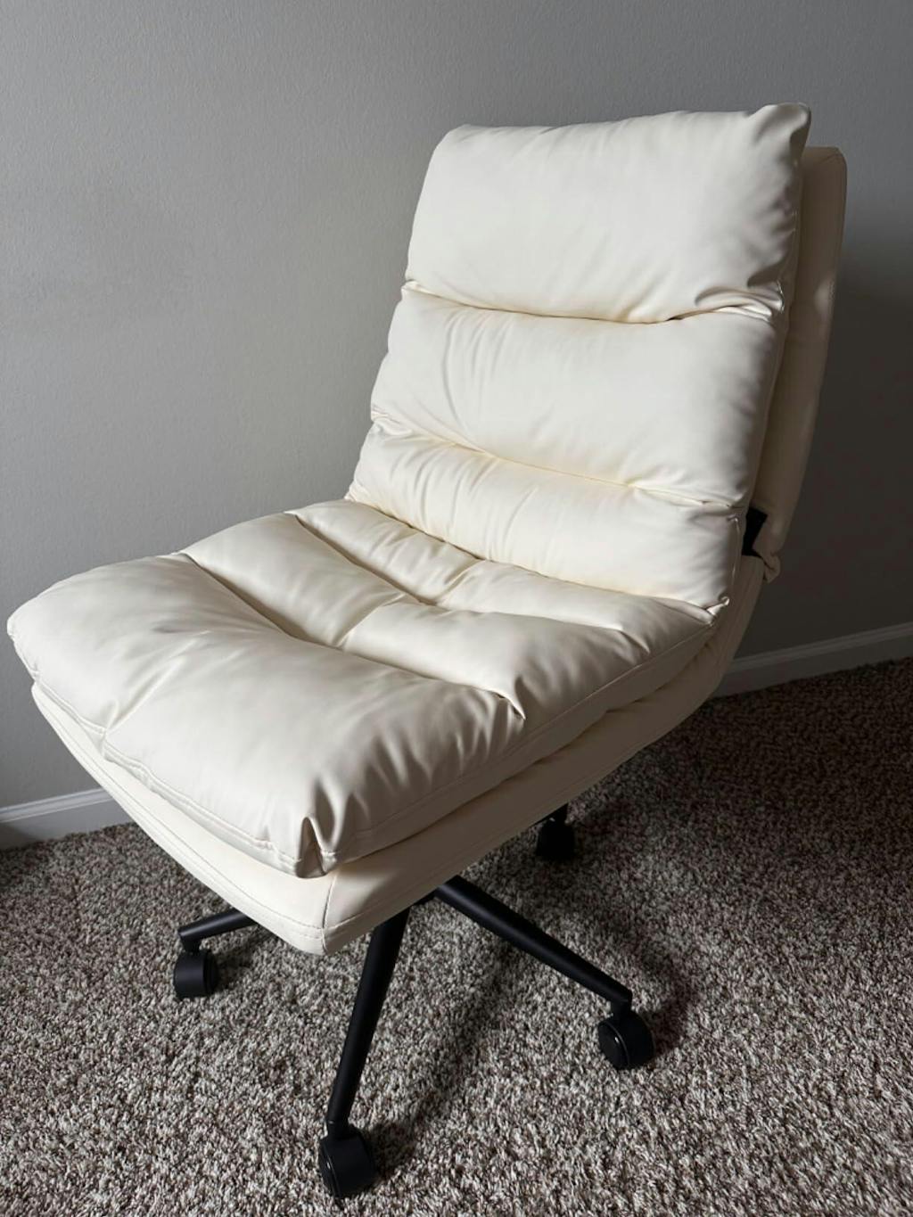 AECOJOY Criss Cross Chair with Wheels Thick Cusion, Premium Leather Beige