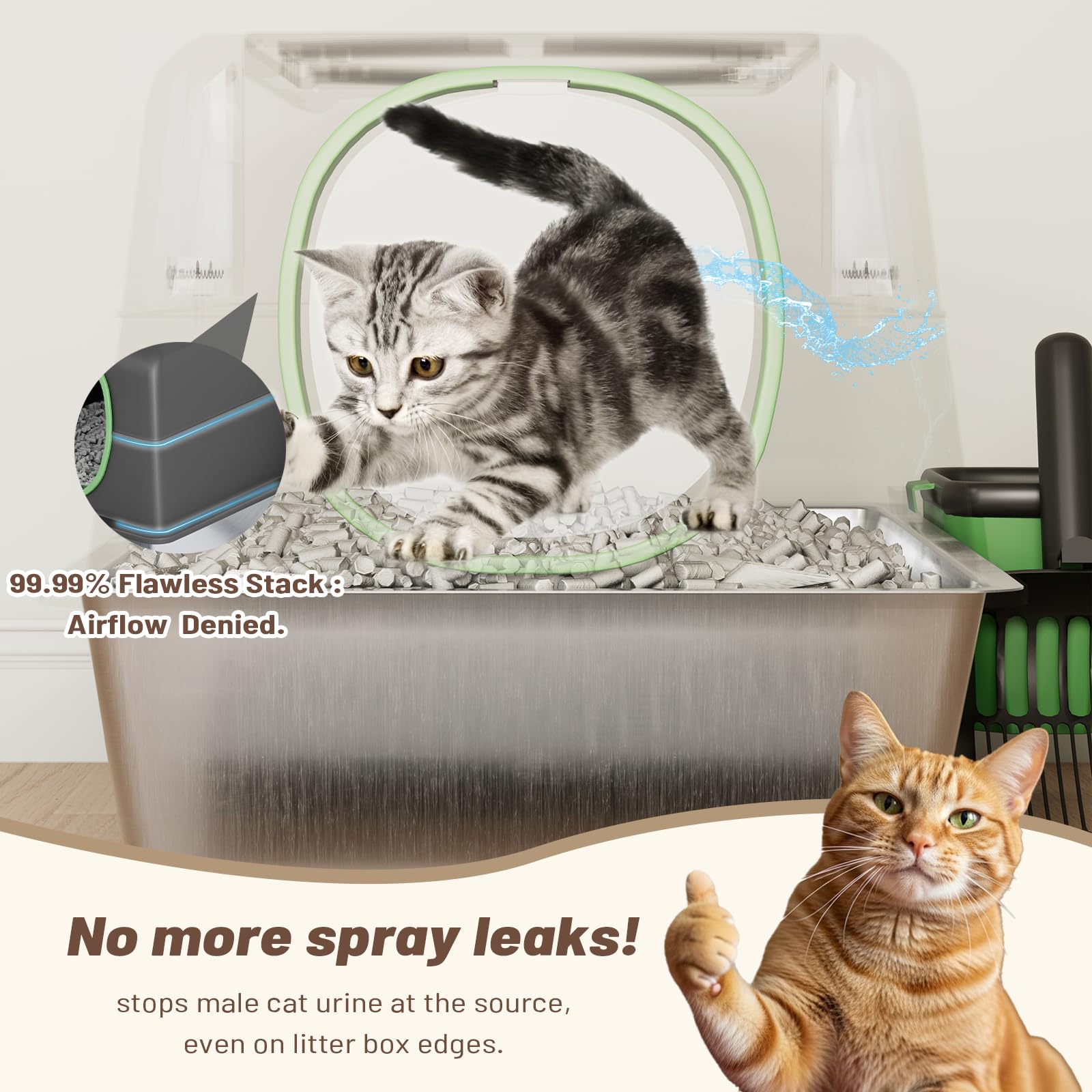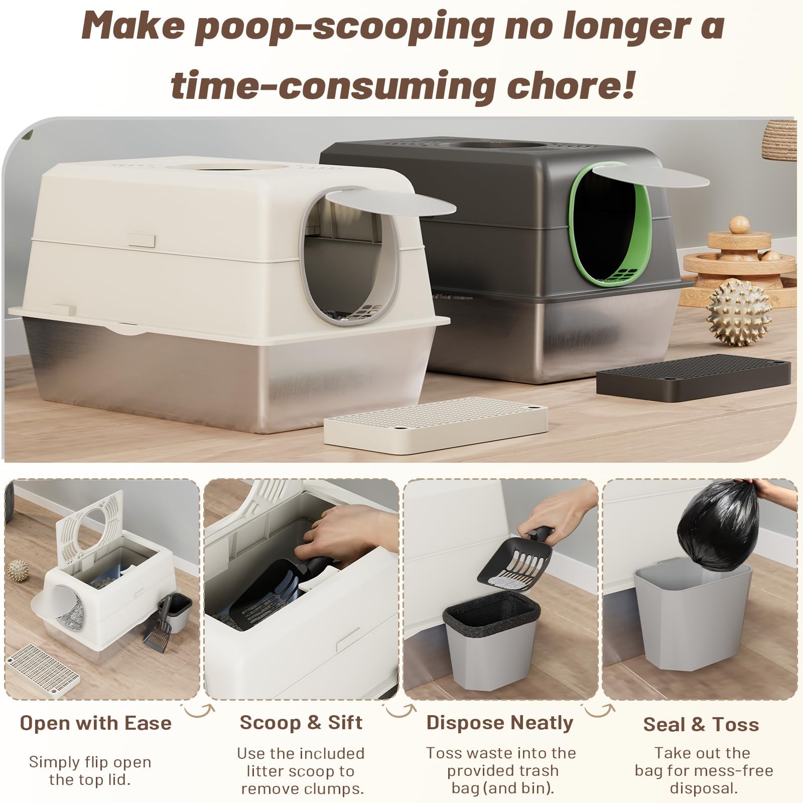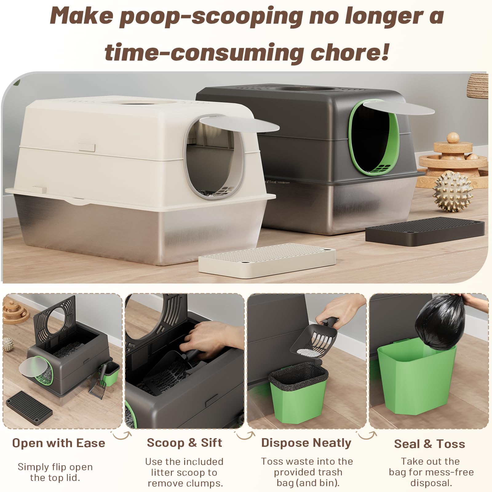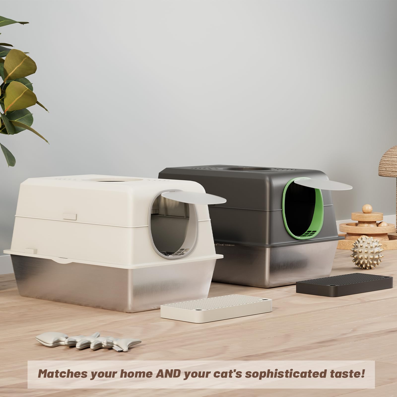 The AECOJOY Extra Large Enclosed Stainless Steel Cat Litter Box provides a clean and comfortable space for your cat. Made from durable stainless steel, it is rust-resistant, odor-resistant, and easy to clean.