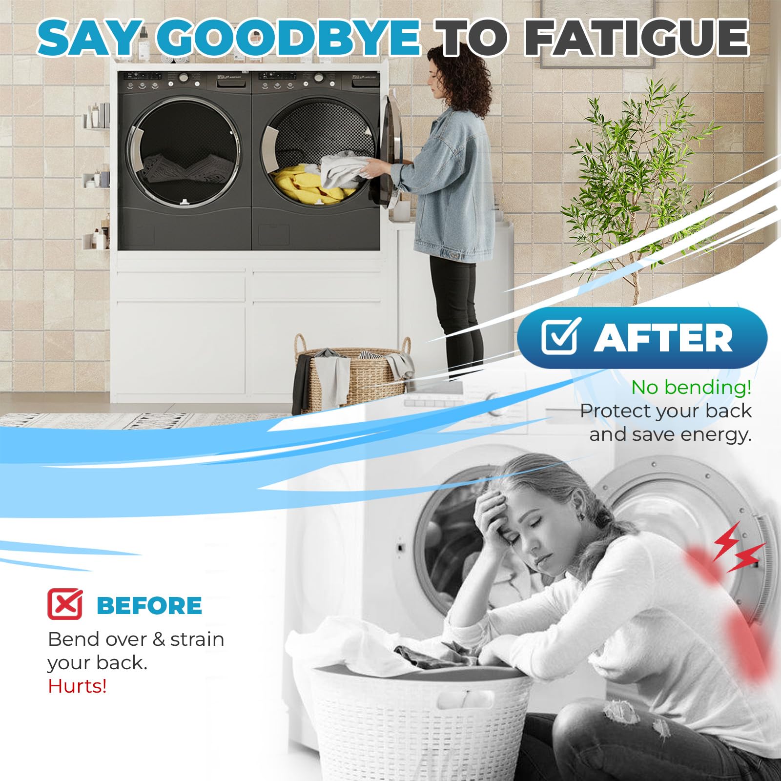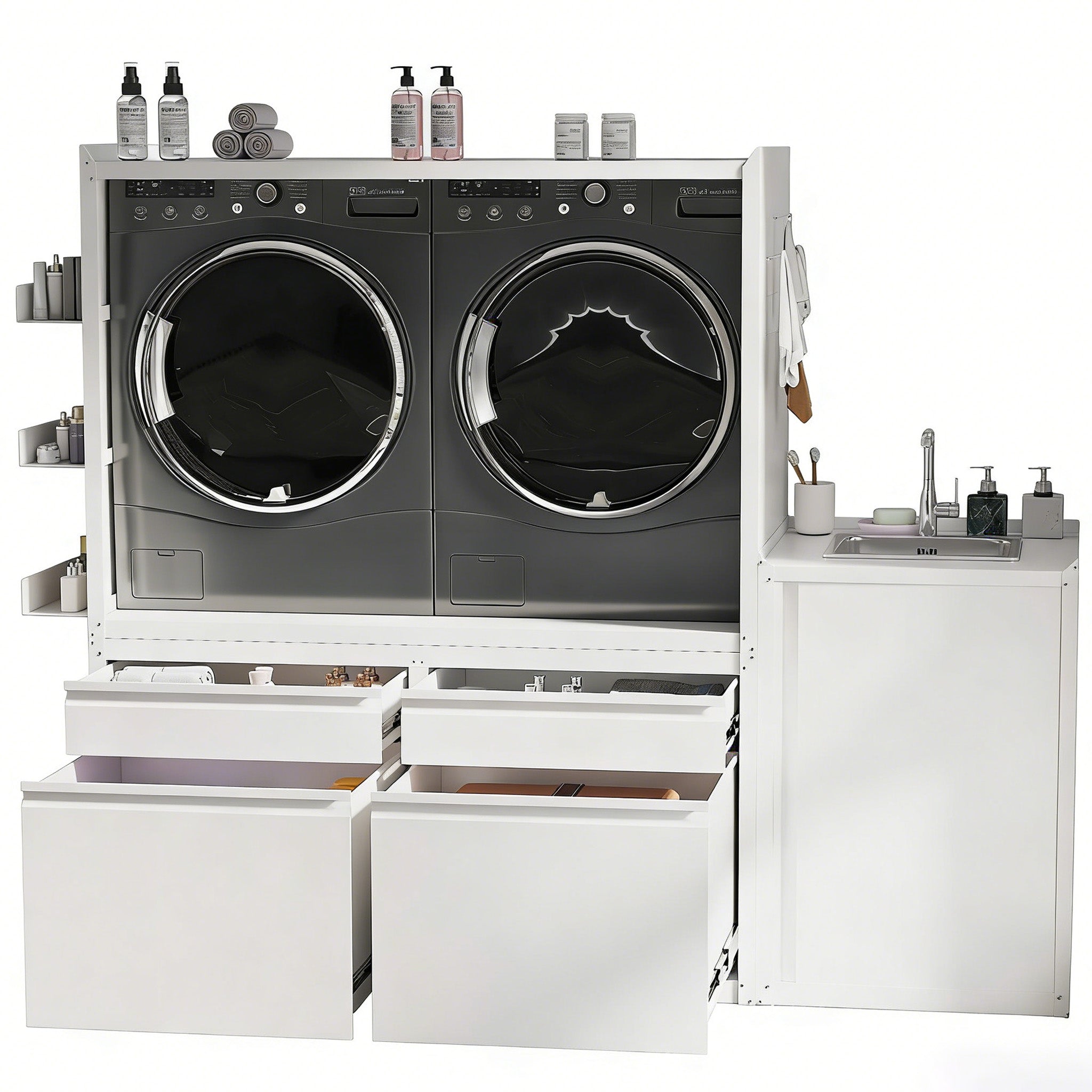 AECOJOY laundry pedestal sink cabinet for 2 washer/dryer units — sturdy storage and utility sink base that raises machines and adds organization to laundry rooms.