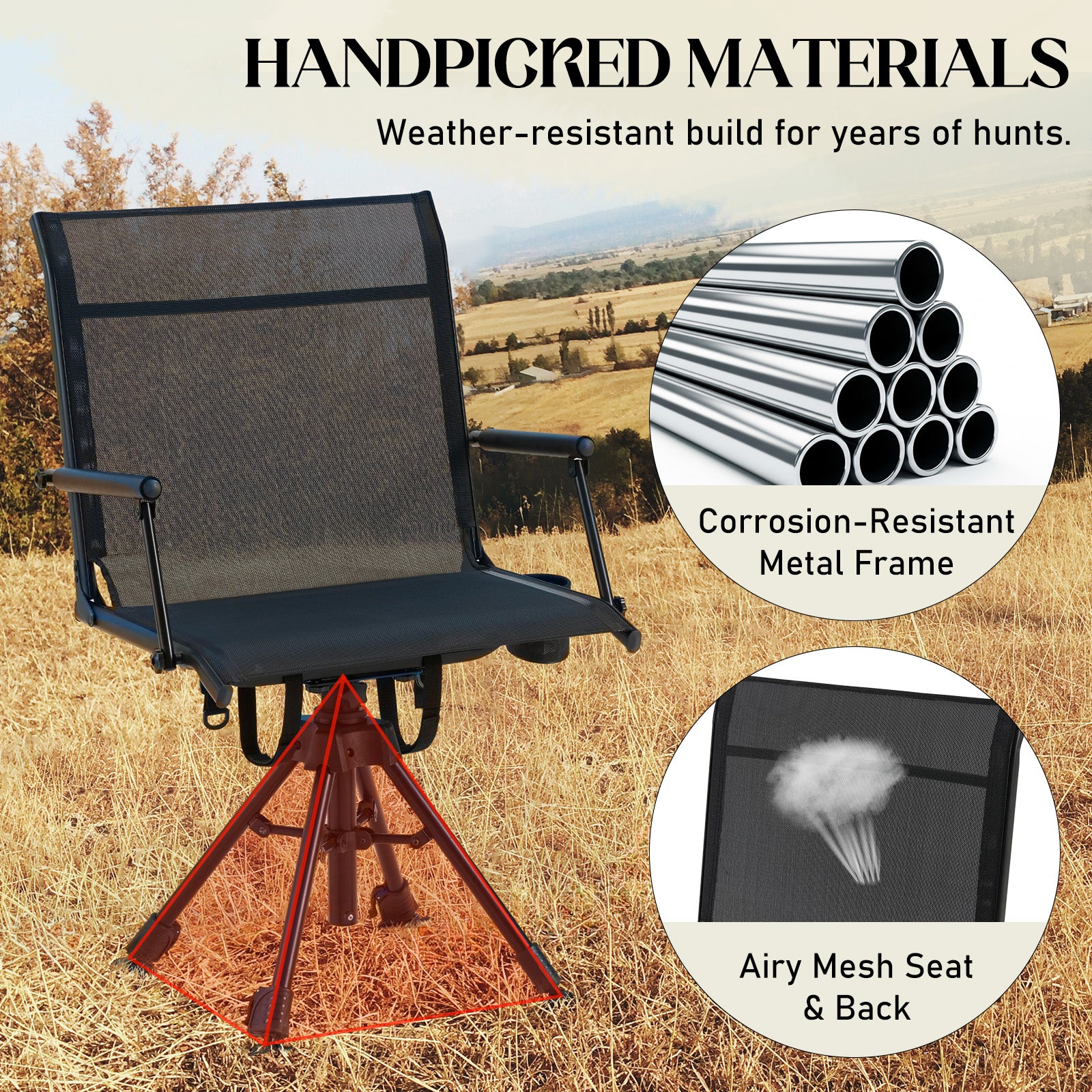 AECOJOY No Cushion Hunting Chair, Durable Metal Frame, Silent Swivel for Outdoor Shooting & Fishing