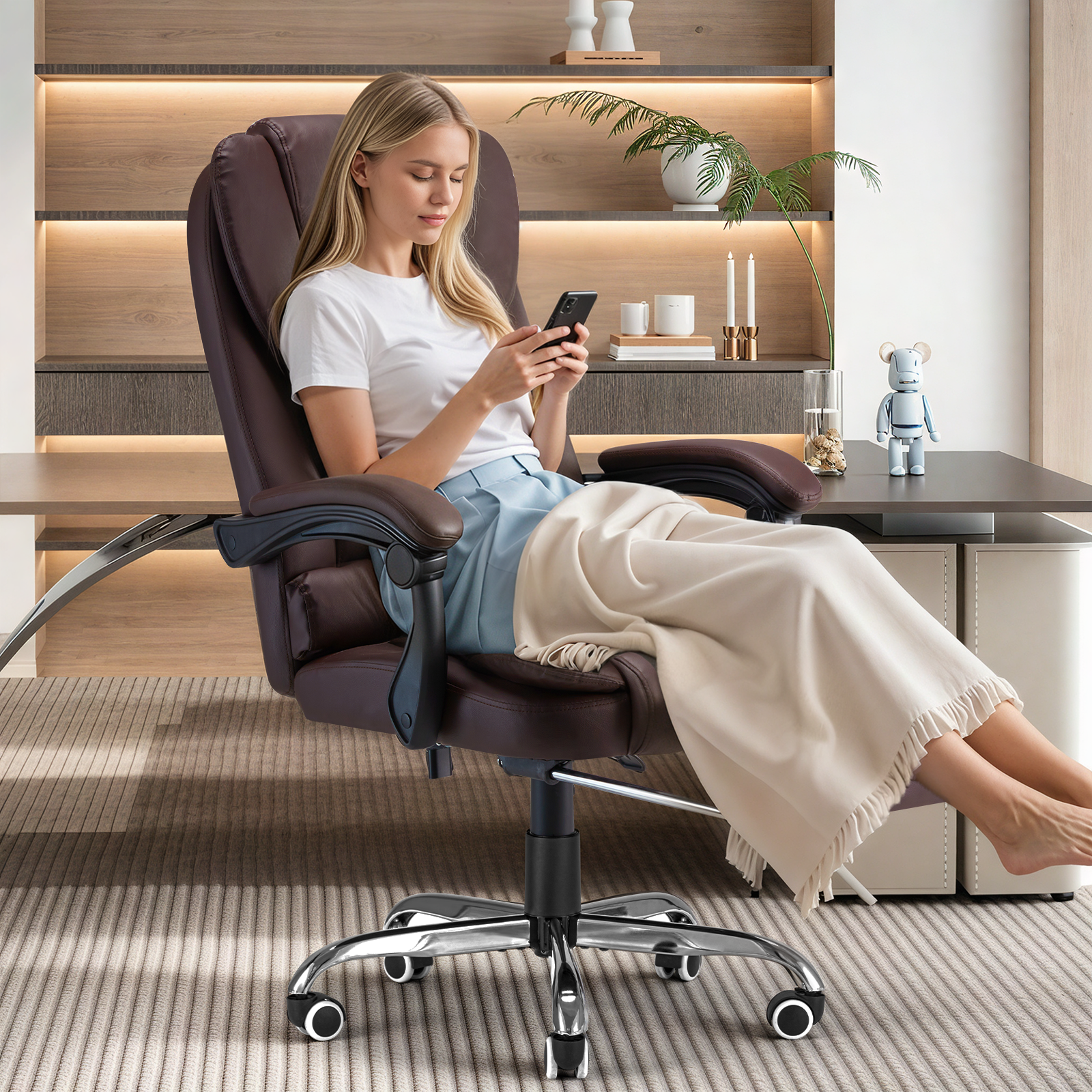 Elevate your comfort with the AECOJOY Office Chair featuring 7 points of vibration massage and heat functions. Upholstered in premium black leather and equipped with a convenient footrest, this chair is designed for optimal relaxation during long work hours. Transform your workspace into a haven of comfort and productivity.