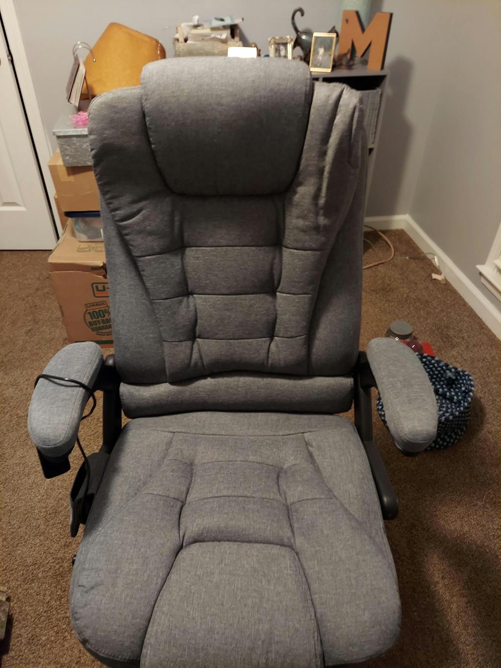 AECOJOY Office Chair with 7 Points Vibration Massage&Heat Functions, Grey Linen without Footrest