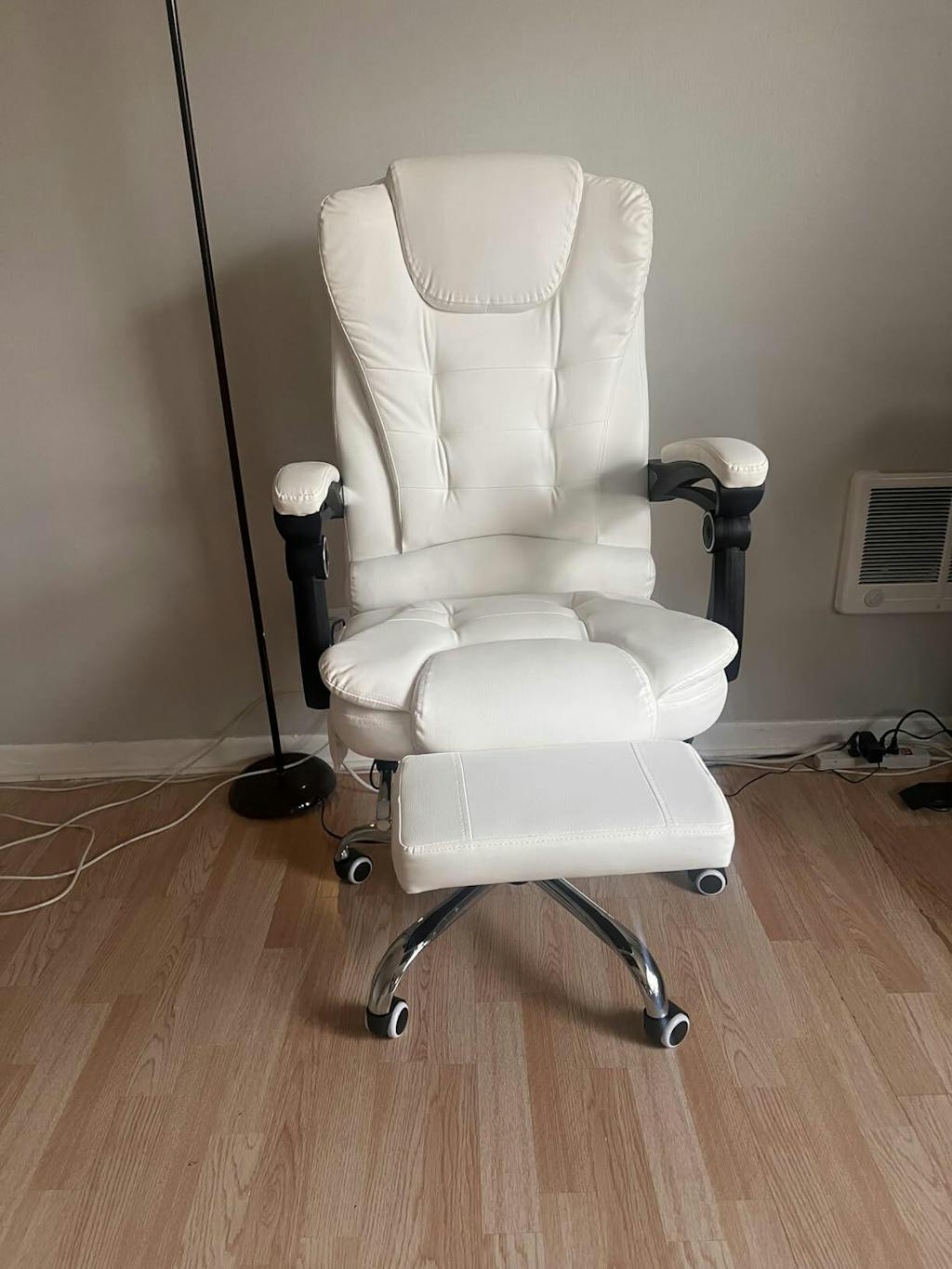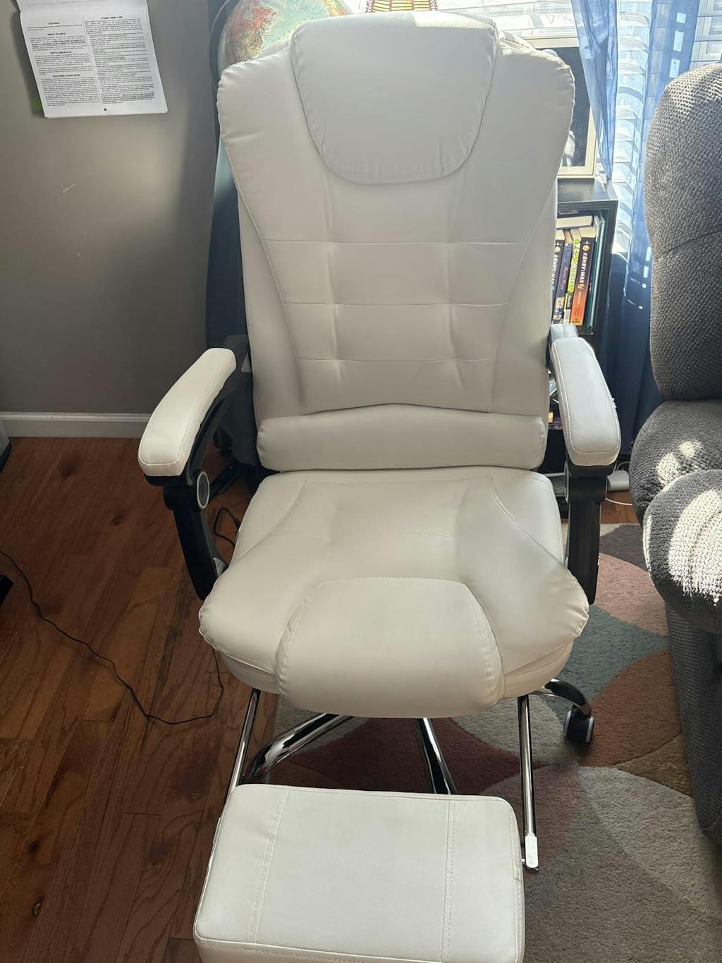 AECOJOY Office Chair with 7 Points Vibration Massage&Heat Functions, White Leather with Footrest