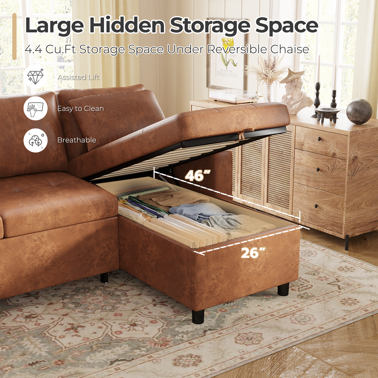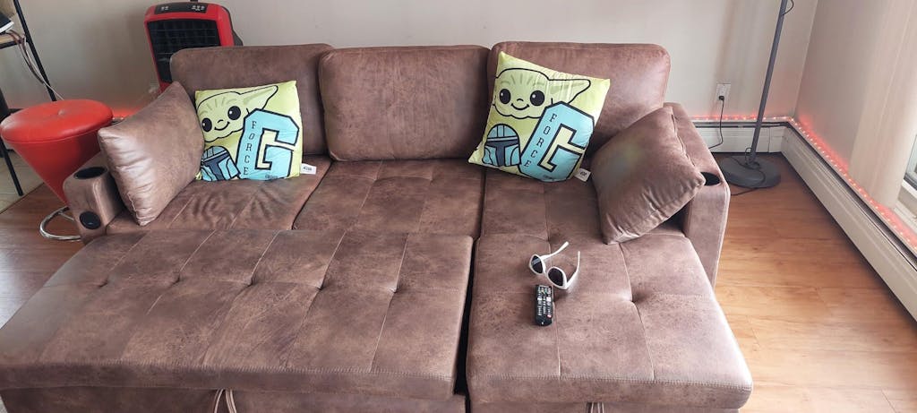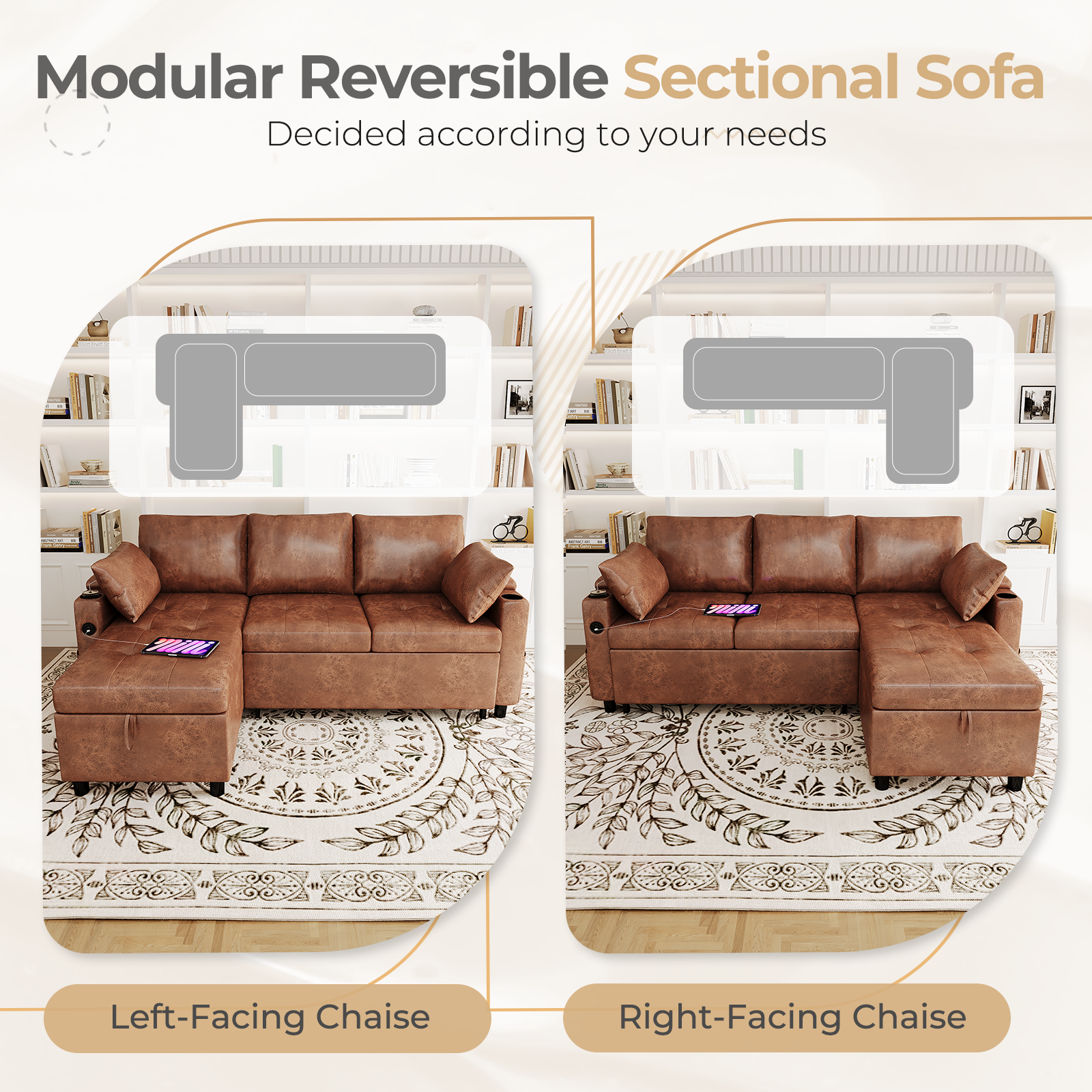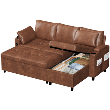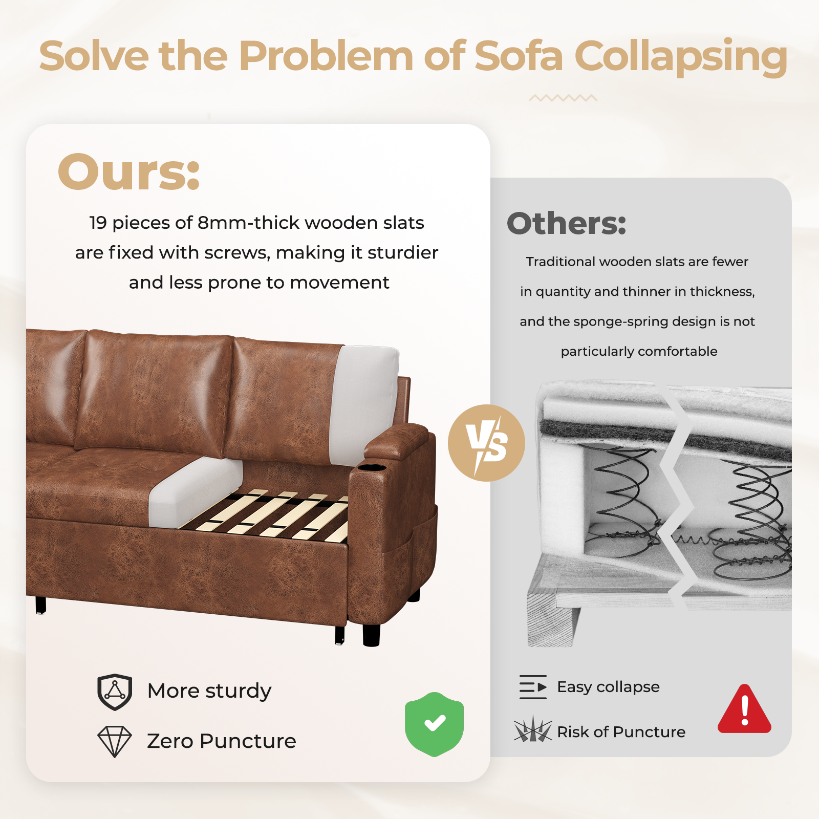 AECOJOY Sleeper Sofa Couch with Pullout Bed, Faux Leather, Brown