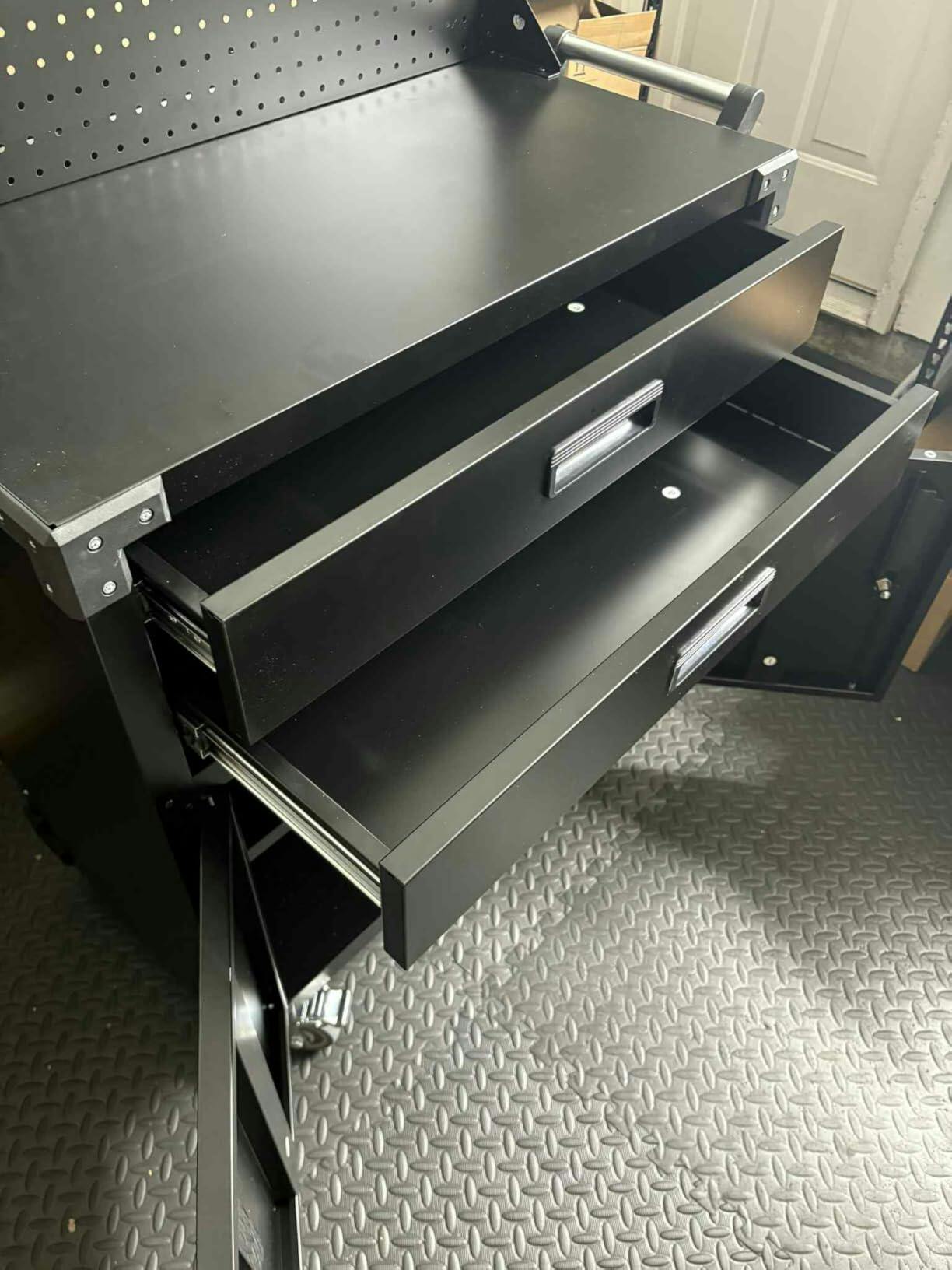 AECOJOY Work Bench for Garage with Pegboard Drawers, Black